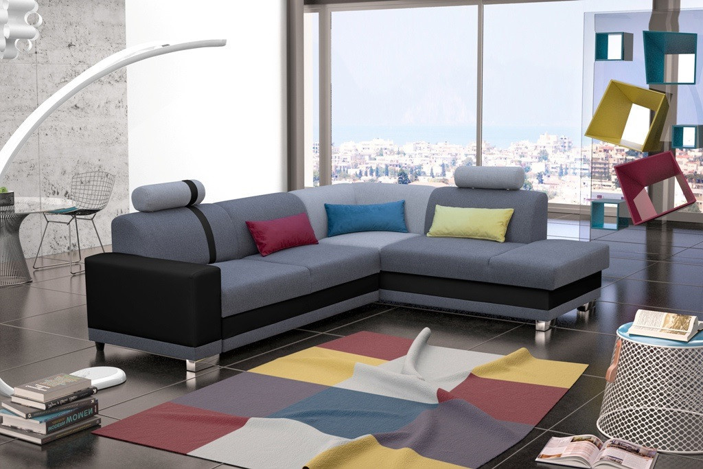 Rozkládací rohová pohovka VERATTI je moderní kus nábytku, který bude dokonalým doplňkem obývacího pokoje. Rohová sedací souprava ve tvaru písmene L je k dispozici jako pravostranná nebo levostranná varianta, takže si každý může nábytek přizpůsobit tvaru zařízené místnosti. Tvarově zajímavá rohová sedací souprava je vybavena prostorným kontejnerem na lůžkoviny a funkcí spaní, díky níž lze nábytek rozložit. Rohová sedací souprava pro tři osoby do obývacího pokoje je kus nábytku se středně velkým opěradlem a je vybavena dvěma opěrkami hlavy, které uživateli umožní maximální relaxaci i při dlouhém odpočinku. Spolu s rozkládací rohovou pohovkou jsou v sadě k dispozici dekorativní polštáře. Stabilní kus nábytku s dřevěným rámem je umístěn na chromovaných nohách, které zajišťují nejen odolnost kusu nábytku, ale také zdůrazňují jeho originální charakter. Jednostranná rohová pohovka VERATTI je čalouněna tradiční látkou. Představený model může mít barevné provedení odpovídající individuálnímu vkusu a preferencím, protože si můžete vybrat z bohatého vzorníku barev. Model VERATTI je kus nábytku s čalouněnými zády, a tedy volně stojící kus nábytku, takže jej lze umístit nejen ke stěně, ale i do centrální části místnosti.