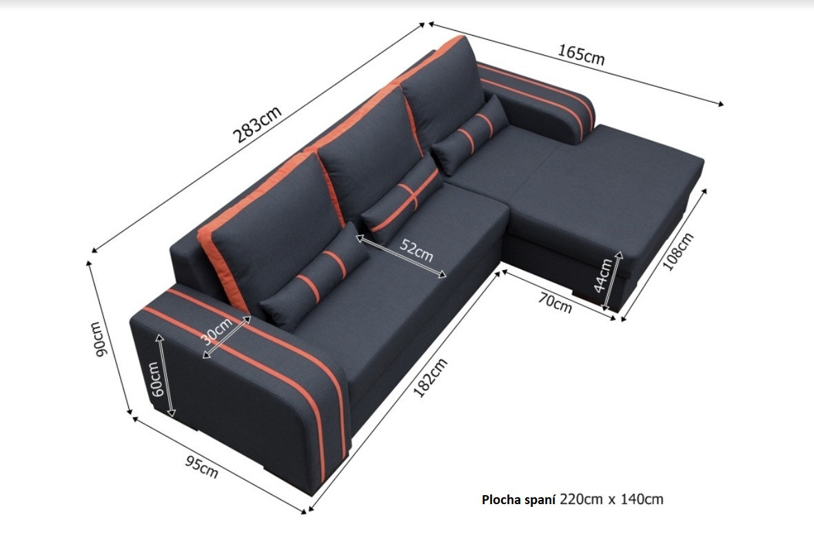 - rohová pohovka je k dispozici v pravém i levém provedení