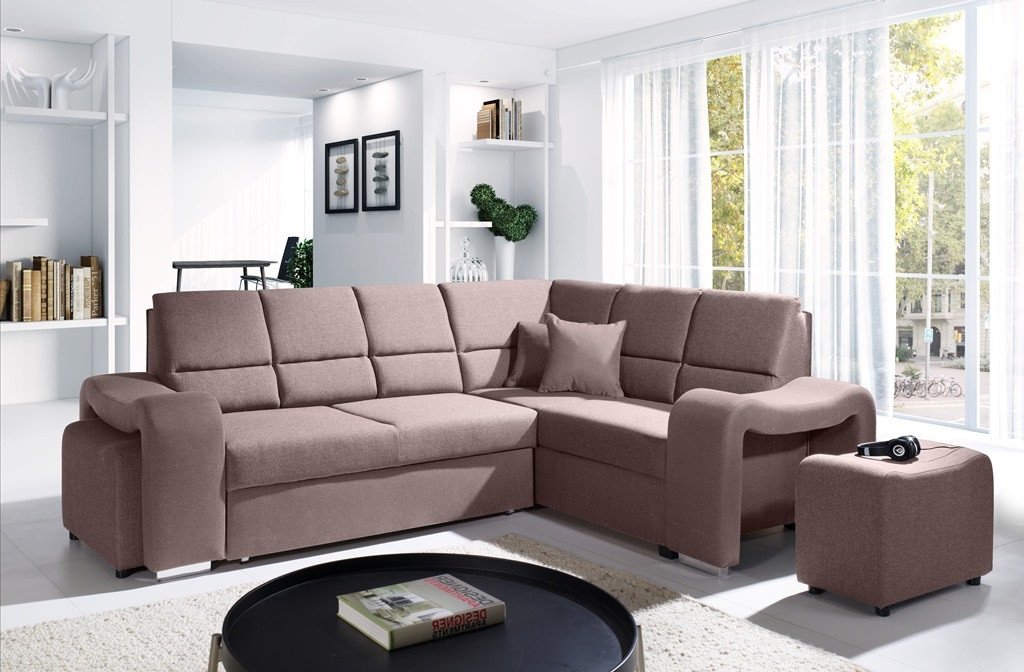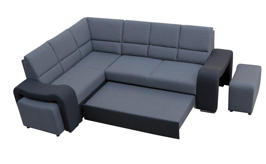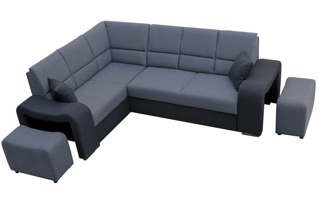Rohová sedací souprava WAKIKI má stylový design, který zajistí pohodlí i při mnohahodinovém odpočinku s rodinou nebo přáteli. Tato moderní rohová pohovka ve tvaru písmene L je k dispozici v pravém i levém provedení. Představená rohová sedací souprava pro více osob s funkcí spaní umožňuje rozložit nábytek, což zajistí pohodlí a bezpečnost spánku. WAKIKI je k dispozici v široké škále barev, takže si každý může vytvořit model podle svého individuálního vkusu a preferencí. Moderní rohová pohovka do obývacího pokoje je doplněna dvěma taburety, které vytvářejí další sedací plochu a hodí se i jako podnožka. Do nábytku byly zabudovány speciální úložné prostory pro výše zmíněné taburety, do kterých je bude možné volně uložit, když se nebudou používat. Nábytek stojí na dřevěném rámu s chromovanými nohami, které mu dodávají moderní vzhled. Volně stojící rohová sedací souprava WAKIKI má také úložný prostor na lůžkoviny, do kterého lze bez větších problémů uložit přikrývky, polštáře nebo deky.