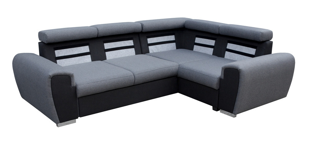 Moderní rohová sedací souprava WIZARO má elegantní design, který dokonale zapadne do prostoru obývacího pokoje nebo obývacího pokoje zařízeného v industriální a modernistické estetice. Rohová sedací souprava ve tvaru písmene L s bočnicemi je k dispozici ve dvou variantách: pravé nebo levé. Rohová sedací souprava s mírně zaoblenými hranami je vybavena pohyblivými opěrkami hlavy, díky nimž si každý může nastavit opěradlo podle svých individuálních potřeb a vlastního pohodlí. Rohová souprava pro více osob se dodává s dekorativními polštáři. Kromě polohovatelného opěradla má rohová pohovka úložný prostor na lůžkoviny a také funkci spaní, takže ji lze rozložit a zajistit tak pozvaným hostům pohodlí a bezpečný noční odpočinek. Rohová pohovka s dřevěným rámem je vyplněna čalounickou pěnou T-30 a vlnitou pružinou na sedací části. Výše uvedené materiály zajistí trvanlivost, stabilitu a pevnost konstrukce. Stylová rohová pohovka s chromovanými nožkami bude nejen místem pohodlného odpočinku, ale také estetickým kusem nábytku podtrhujícím vytvořené uspořádání.