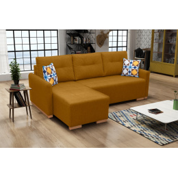 Rohová sedací souprava X1 je elegantní konstrukce, která stojí na dřevěných nohách, jež podtrhují moderní charakter korpusu. Rohovou sedací soupravu s bočnicemi ve tvaru L lze různou látkou. Představený rohový model má kromě dřevěných nohou také dřevěný rám, který zaručuje dostatečnou odolnost a stabilitu. Rozkládací rohová pohovka X1 je k dispozici v pravém nebo levém provedení podle vašeho výběru. V rohu je k dispozici úložný prostor na lůžkoviny, do kterého lze bez větších problémů uložit přikrývky, polštáře a peřiny. Rohová pohovka X1 s funkcí spaní zajistí svým uživatelům bezpečný a pohodlný spánek. Barevné provedení nábytku si můžete vybrat z široké škály barev dostupných ve vzorníku. Sedák je spolu s opěradlem v podobě tří prošívaných polštářů vyplněn vlnitými pružinami a čalounickou pěnou, které se starají o zachování odpovídající pružnosti nábytku, jenž tak rychle nepodléhá opotřebení.