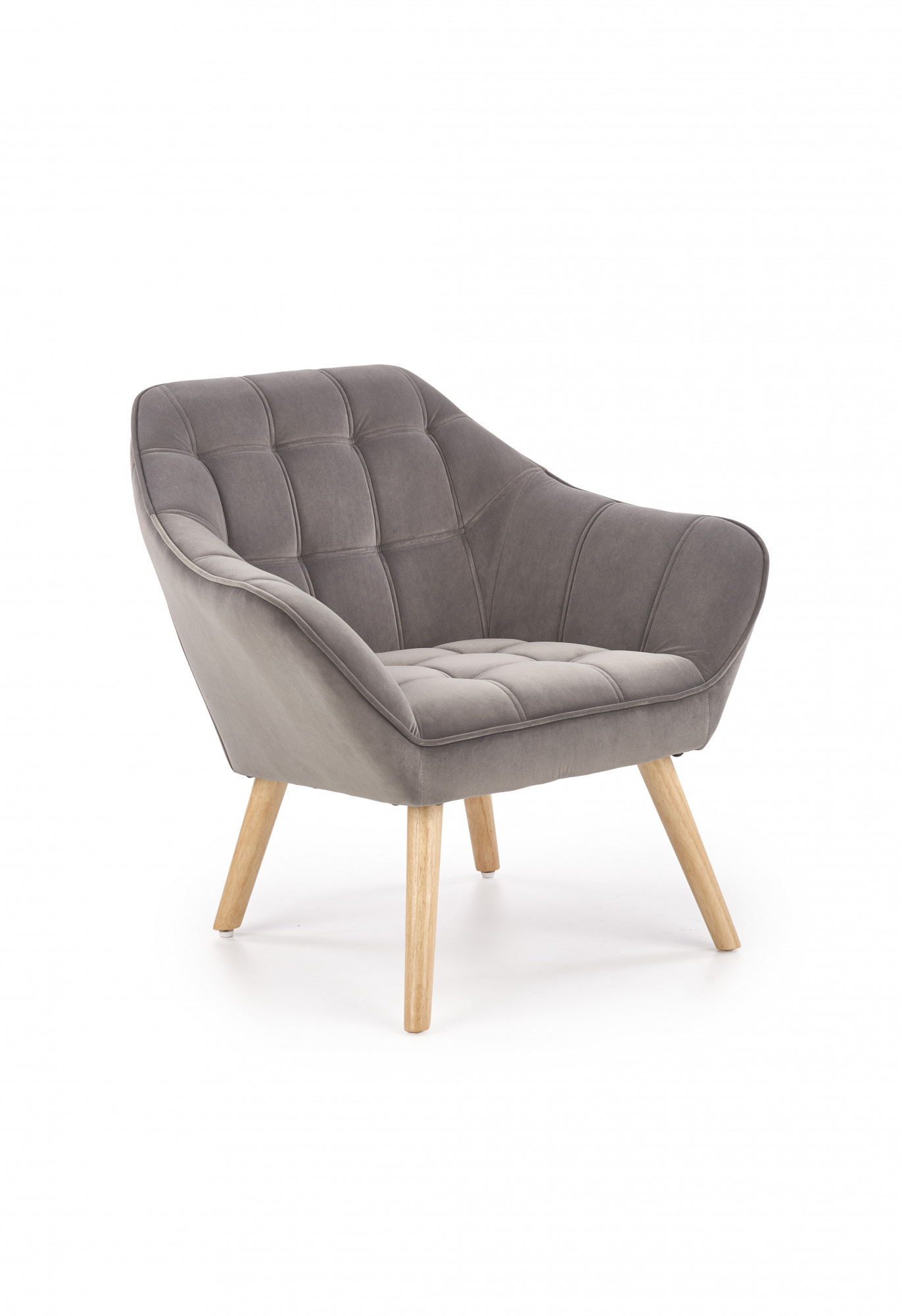 méretek: 83/75/75/47 cm, anyag: szövet / tömör fa, szín: kárpit - szürke, lábak - természetes