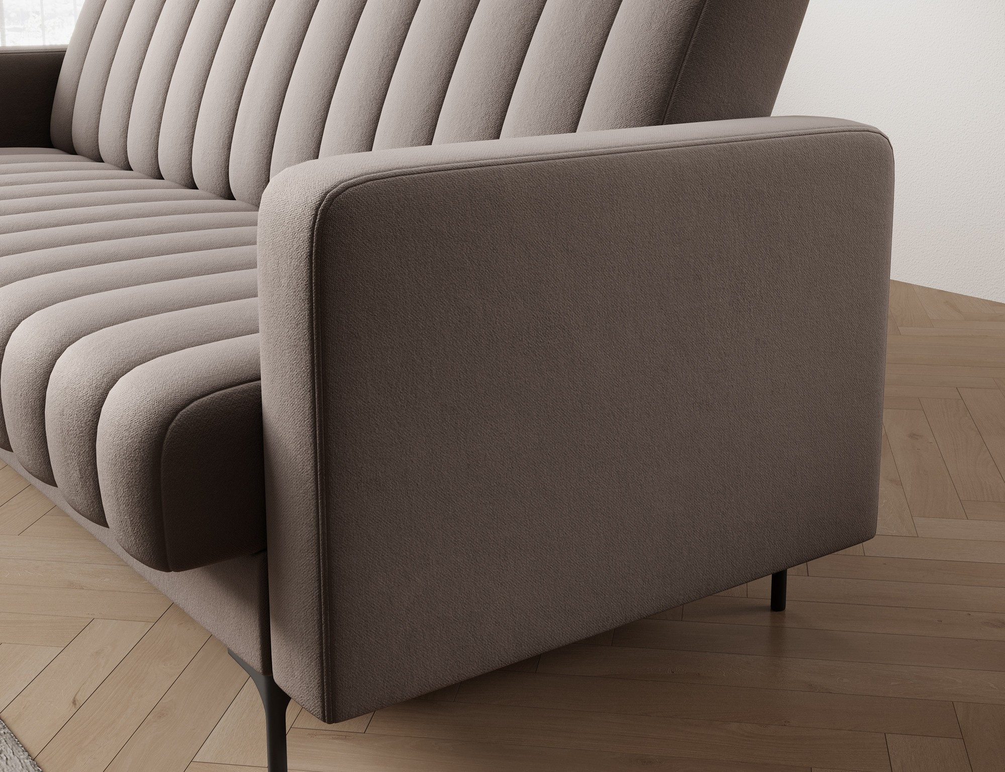 The modern Roneyy sofa bed, measuring 212x89x86 cm, is a stylish and functional piece of living room furniture that combines everyday comfort with practical solutions such as a sleeping function and bedding storage. Comfort is ensured by a seat and backrest filled with B-type wave springs and T2540 foam, while black plastic legs emphasize stability and an elegant look. The Click-Clack mechanism makes it easy to unfold the sofa bed, which means Roneyy fits perfectly into modern interiors and meets the expectations of even the most demanding users.