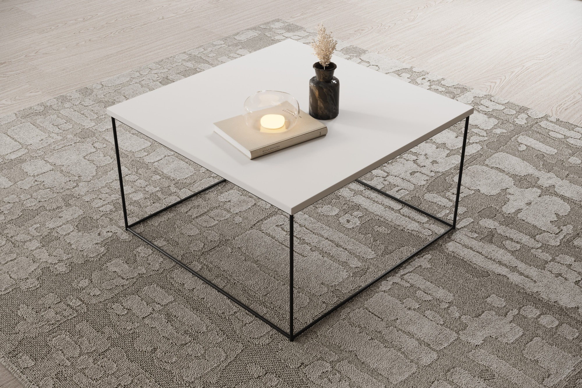 A Roni dohányzóasztal elegáns és modern bútor, amely tökéletesen illeszkedik bármelyik modern belső térbe. Négyzet alakú táblája van, amely tartós laminált lapból készült, karcálló és könnyen tisztán tartható. A laminát különböző felületkezelésekkel rendelkezhet, mint például fa, beton utánzat vagy egyszínű megjelenés, ami lehetővé teszi az asztal különböző stílusú elrendezésekhez való igazítását. Az asztal alapját egyedi láb alkotja, amely acélhuzalból készült, és könnyedséget, valamint ipari jelleget kölcsönöz a bútornak. A huzal precízen formázott geometriai mintába van hajlítva, ami érdekes és egyben stabil szerkezetet hoz létre. A fém láb matt fekete, fehér vagy más színben is elkészíthető, ami tovább hangsúlyozza az asztal modern dizájnját. A Roni dohányzóasztal nemcsak funkcionális, hanem esztétikus kiegészítője is a nappalinak, amely remekül illik a skandináv, loft vagy minimalista stílusú terekbe. Univerzális kialakításának köszönhetően a Roni minden belső tér központi elemévé válik.