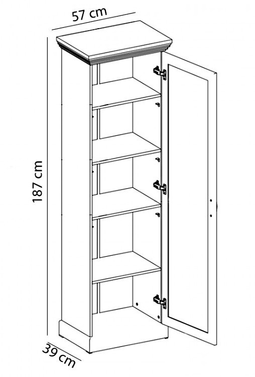 A ROYAL bútorkészlet stílust és eleganciát hoz otthonába. A ROYAL bútorokkal az egész otthonát berendezheti - étkezőt, hálószobát, nappalit, konyhát vagy előszobát. A bútor nagyon jó minőségű LTD lapból készült, MDF-fel kombinálva, Északi fenyő színben (a bútor korpusza és elülső felületei) Vad tölggyel (a bútor felső felületei). A fogantyúk fémből készültek.A belső polc mérete 470 mm széles és 335 mm mély.