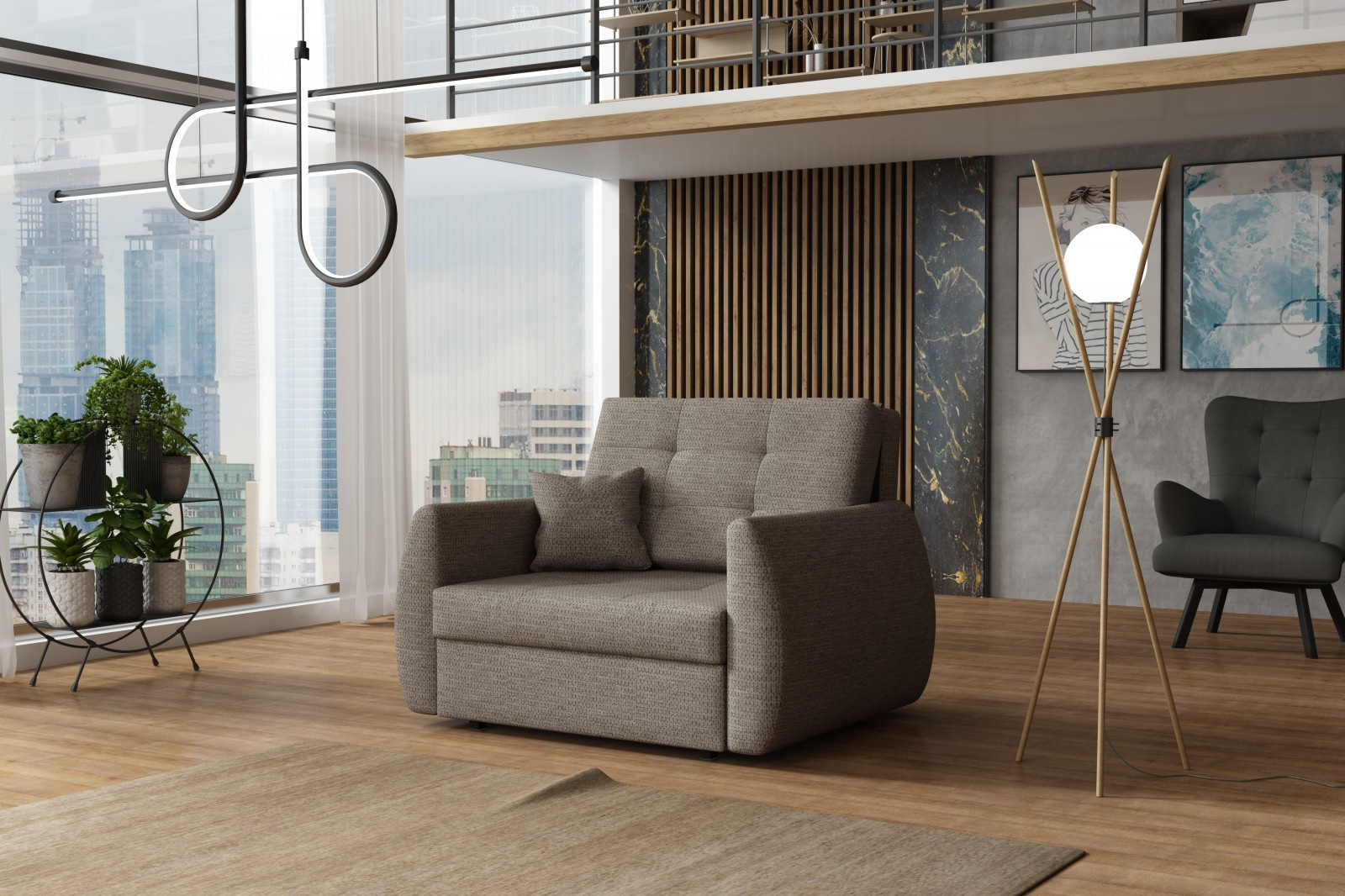 Rozkládací křeslo Vivian Art I hnědošedé
