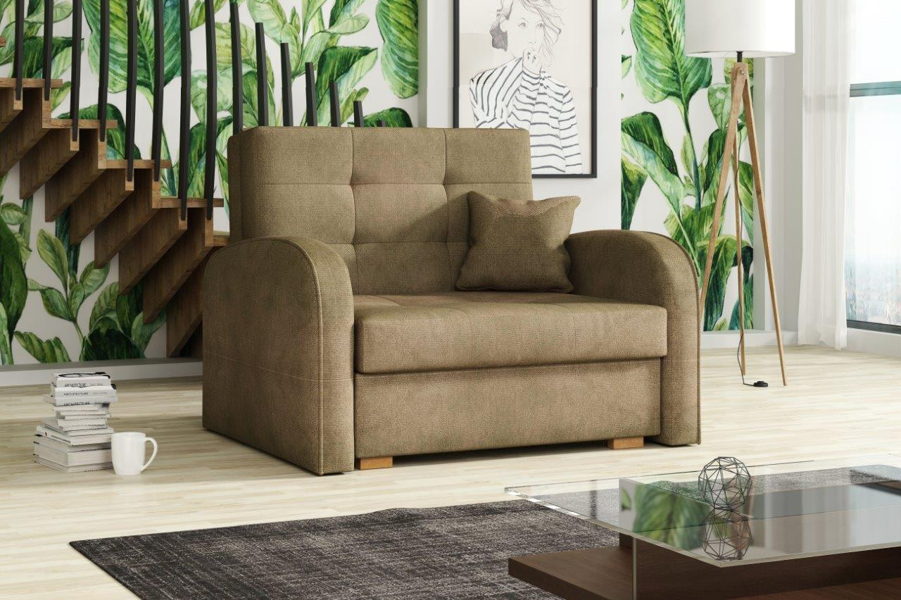 Rozkládací křeslo Vivian je vhodné do dětského, studentského, nebo hostinského pokoje. Jednoduchým rozložením pomocí automatu, získáte lůžko k příležitostnému přespání Vaší návštěvy, nebo kamaráda dětí. Výplň sedáku tvoří vlnité pružiny v kombinaci s PUR pěnou. Křeslo je potaženo látkou a nabízíme ho v několika trendy odstínech. Křeslo disponuje i nepostradatelným úložným prostorem, který využijete např. na deku a polštář. V ceně křesla je 1 dekorační polštář. Ostatní vyobrazené dekorace nejsou v ceně. Zobrazení barev produktu na fotograii se může nepatrně lišit od skutečnosti.