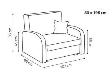 Rozkládací křeslo Vivian je skvělou volbou pro ty, kteří bojují se stísněnými prostory. Je vhodné např. do dětského, studentského, nebo hostinského pokoje. Jednoduchým rozložením pomocí automatu, získáte lůžko k příležitostnému přespání Vaší návštěvy, nebo kamaráda dětí. Výplň sedáku tvoří vlnité pružiny v kombinaci s PUR pěnou. Křeslo je potaženo kvalitní potahovou látkou a nabízíme ho v několika trendy barvách. Křeslo disponuje i nepostradatelným úložným prostorem, který využijete např. na deku a polštář. V ceně křesla je 1 dekorační polštář. Ostatní vyobrazené dekorace nejsou v ceně. Zobrazení barev produktu na fotograii se může nepatrně lišit od skutečnosti.