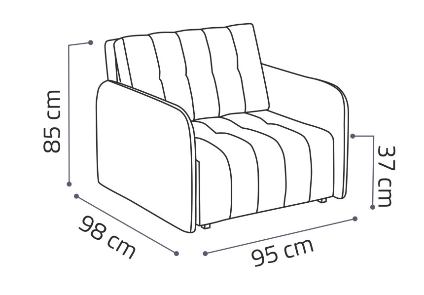 Rozkládací křeslo Vivian je vhodné do dětského, studentského, nebo hostinského pokoje. Jednoduchým rozložením pomocí automatu, získáte lůžko k příležitostnému přespání Vaší návštěvy, nebo kamaráda Vašich dětí. Výplň sedáku tvoří vlnité pružiny v kombinaci s PUR pěnou. Křeslo je potaženo kvalitní látkou s výběrem několika trendy odstínů a velmi elegantním prošíváním. Křeslo disponuje i nepostradatelným úložným prostorem, který využijete např. na deku a polštář. Ostatní vyobrazené doplňky a dekorace nejsou v ceně. Zobrazení barev na fotografii se může od skutečnosti lišit.