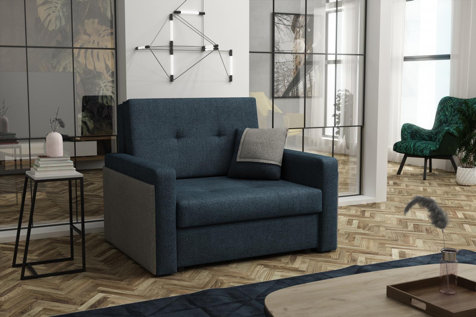 Rozkládací křeslo Vivian Mel I modrá/šedá