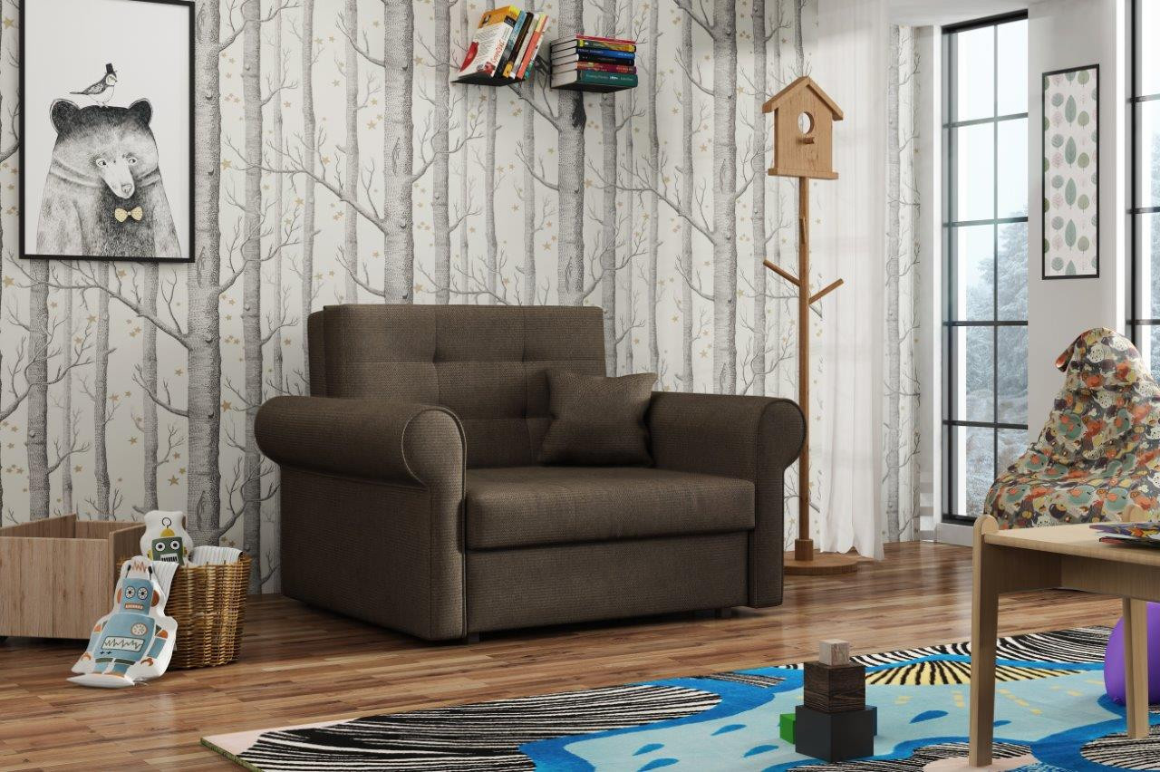 Rozkládací křeslo Vivian je vhodné do dětského, studentského, nebo hostinského pokoje. Jednoduchým rozložením pomocí automatu, získáte lůžko k příležitostnému přespání Vaší návštěvy, nebo kamaráda Vašich dětí. Výplň sedáku tvoří vlnité pružiny v kombinaci s PUR pěnou. Křeslo je potaženo kvalitní látkou s výběrem v několika trendy odstínů. Křeslo disponuje i nepostradatelným úložným prostorem, který využijete např. na deku a polštář. V ceně křesla je 1 dekorační polštářek. Ostatní vyobrazené doplňky a dekorace nejsou v ceně. Zobrazení barev na fotograii se může od skutečnosti lišit.