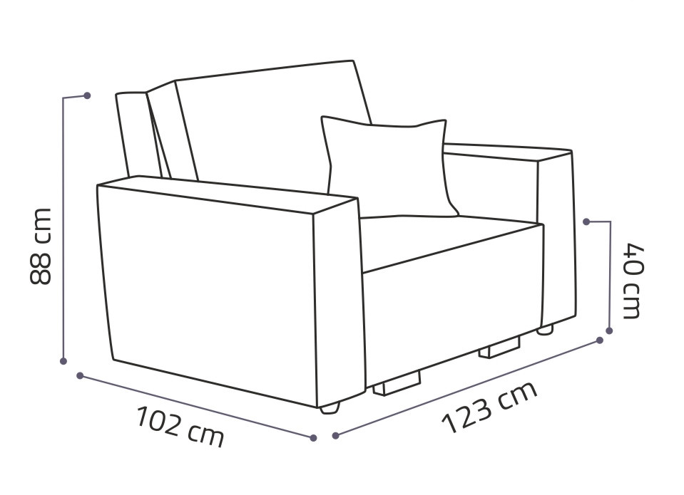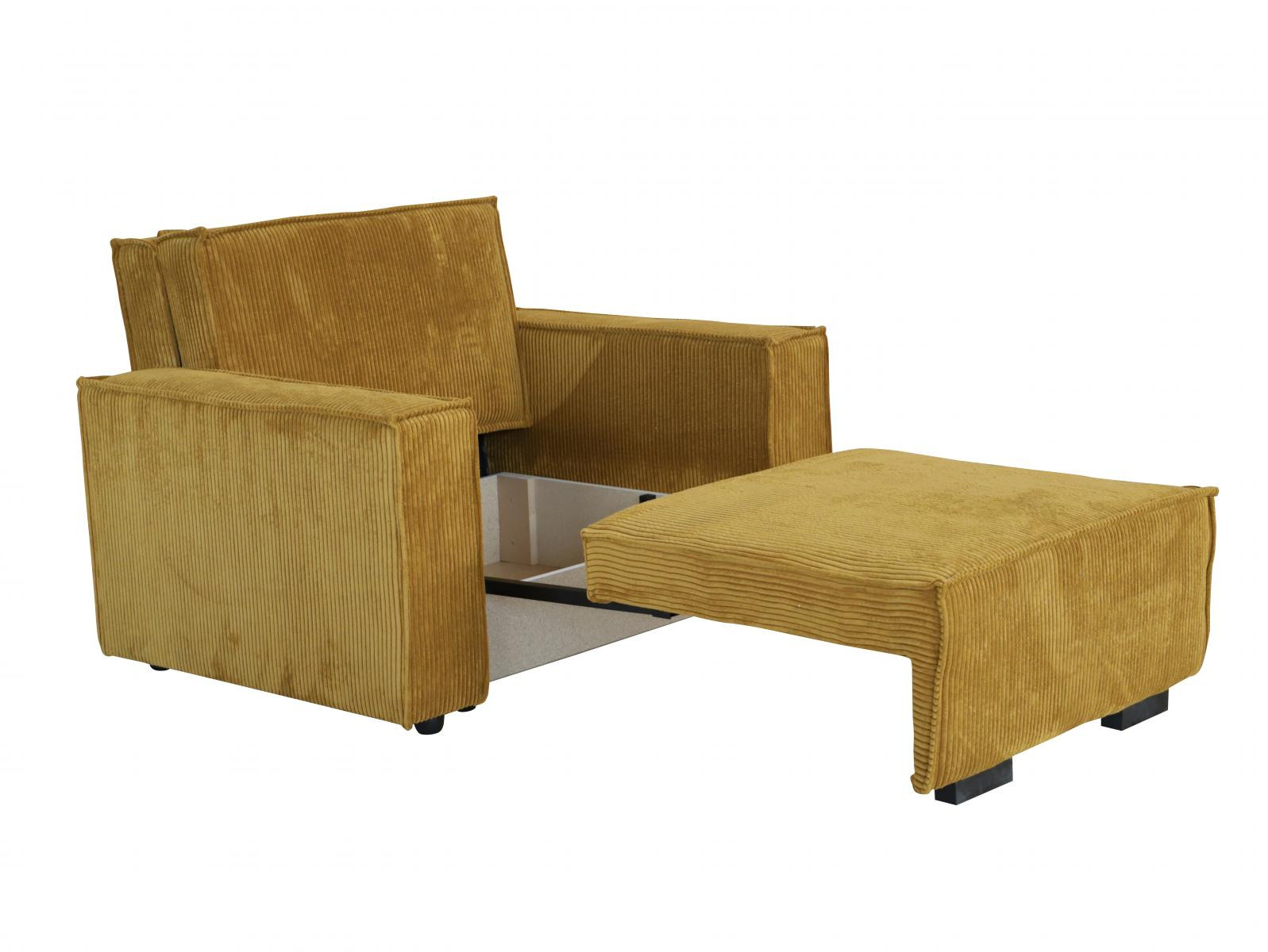 Rozkládací křeslo je vhodné do dětského, studentského, nebo hostinského pokoje. Jednoduchým rozložením pomocí automatu, získáte lůžko k příležitostnému přespání Vaší návštěvy, nebo kamaráda Vašich dětí. Výplň sedáku tvoří vlnité pružiny v kombinaci s PUR pěnou. Křeslo je potaženo kvalitní látkou s výběrem několika trendy odstínů. Křeslo disponuje i nepostradatelným úložným prostorem, který využijete např. na deku a polštář. Ostatní vyobrazené doplňky a dekorace nejsou v ceně. Zobrazení barev na fotografii se může od skutečnosti lišit.