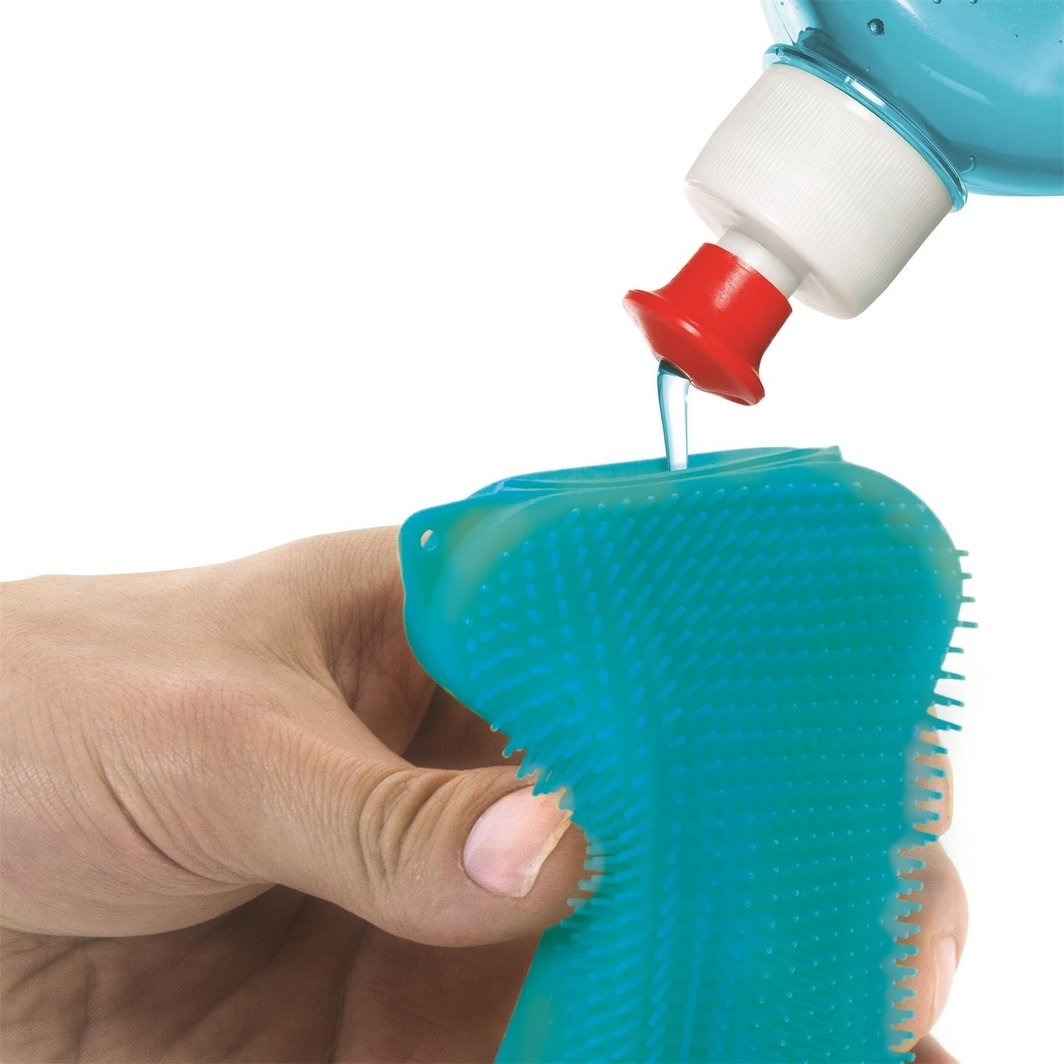 Szilikon szivacs tartállyal és kaparóval lehetővé teszi a könnyed tisztítást, a lassan felszabaduló tisztítószer tartalékkal, amely tisztítja az edényeinket.! Praktikus szilikon kefe, amely beépített kaparóval rendelkezik, amellyel eltávolíthatja a nehezebb foltokat és szennyeződéseket.