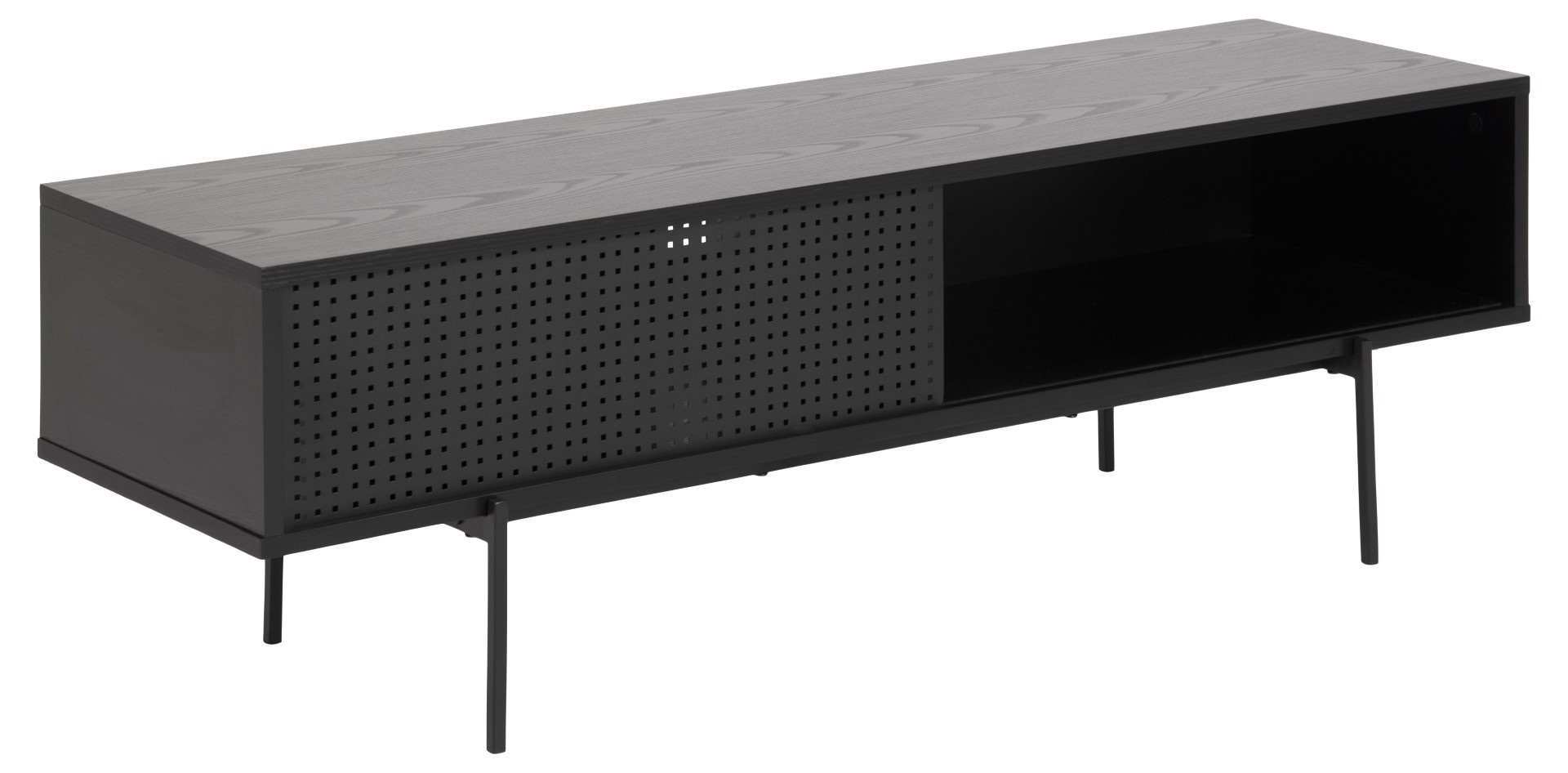 Az Angus televíziós szekrény ipari és modern bútor, amely ideálisan illeszkedik a multimédiás falhoz. A szekrény egy bútortáblából készült korpusz és egy fekete fém alap kombinációja. A szekrény gyártásához használt furnér a kőris évgyűrűit utánozza. A fém alapot matt felületű porfestékkel festették le. Az Angus sorozat bútorai közé tartozik az Angus TV alatti fekete szekrény. Ez a bútor egyszerű formájával és érdekes kivitelezésével tűnik ki. Az egész kollekció fekete színben van hangolva. A csomag méretei: 146x44x9 cm Súly: 22 kg