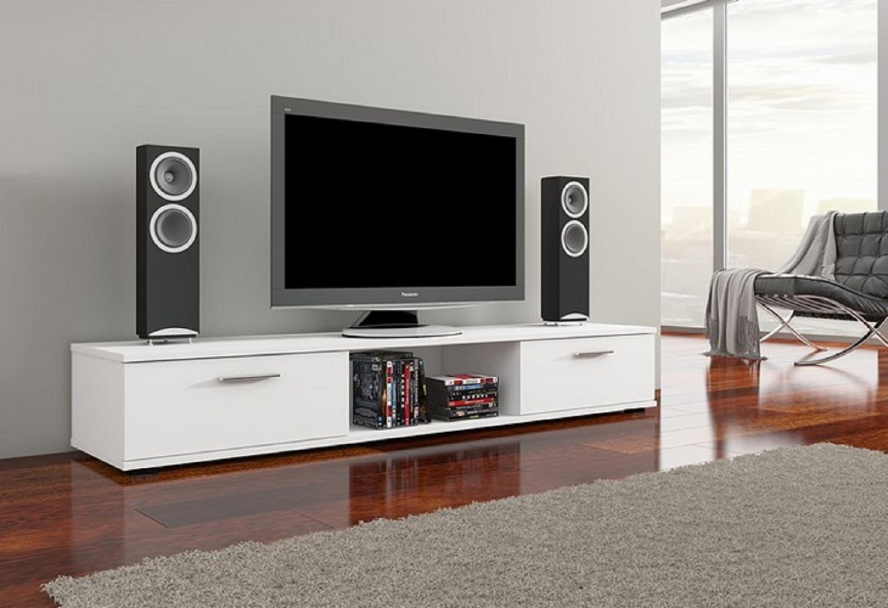Az ARIDEA RTV szekrény egyszerű és modern dizájnnal rendelkeznek. A fülkében és a két tágas szekrényben tárolhatod a felszerelést vagy a könyveket. Az ARIDEA klasszikus és modern belső terekhez egyaránt illik.