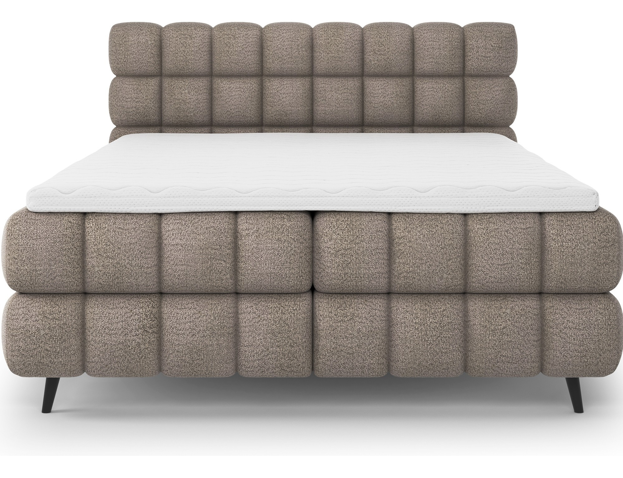 The Sabeno continental bed is an elegant and functional choice for any modern bedroom. The model is available in three size variants: 140x200 cm, 160x200 cm, and 180x200 cm, allowing you to adjust the width of the bed to your individual needs. The total height of the structure is 111 cm and the depth is 222 cm, giving the bed a stable and impressive appearance. Sleeping comfort is ensured by the combination of Bonell springs and T2540 foam, which provide proper support and durability. The Sabeno bed is equipped with a practical bedding storage compartment that helps keep your bedroom organized. Black wooden furniture legs complete the overall design, adding subtle elegance and lightness. The modern style of the Sabeno makes it a perfect fit for both minimalist and more expressive interior arrangements. Thanks to its functionality, high-quality materials, and aesthetic finish, the Sabeno continental bed is the ideal choice for those who value comfort, durability, and stylish bedroom furniture.