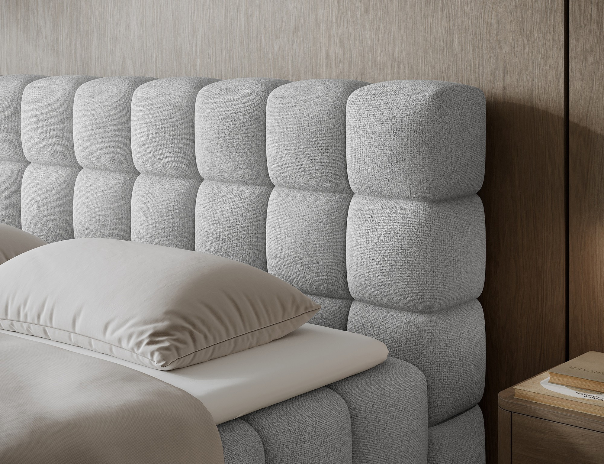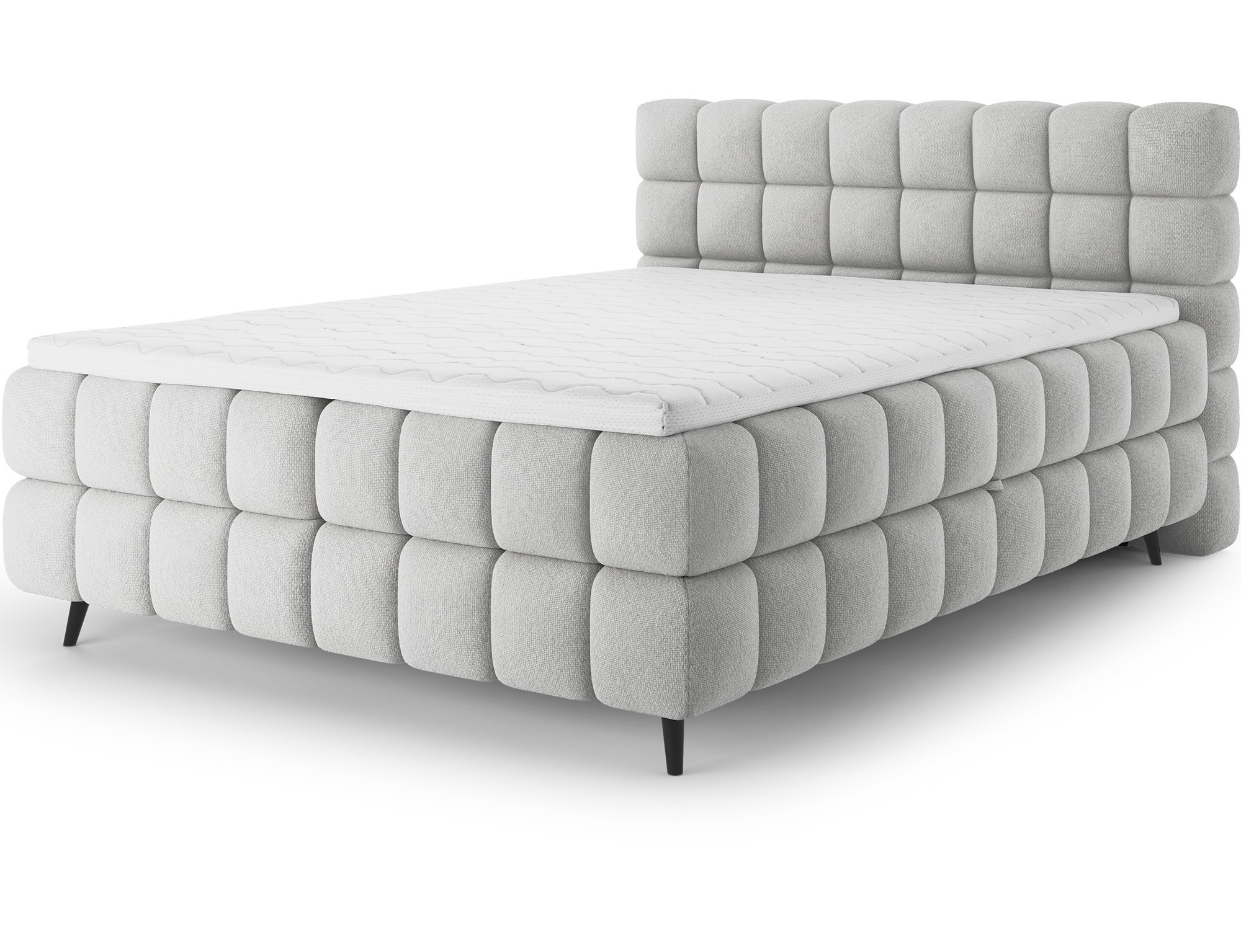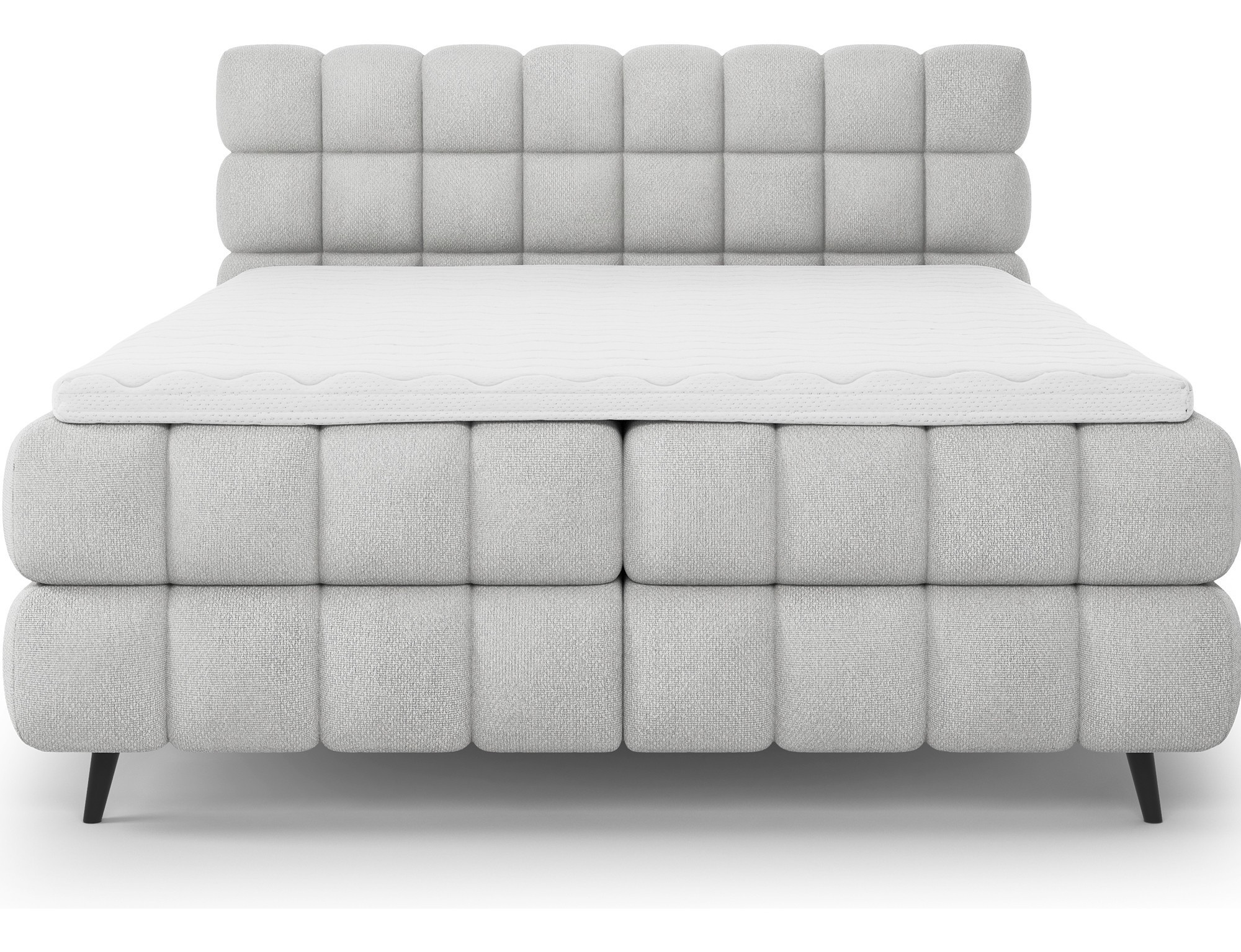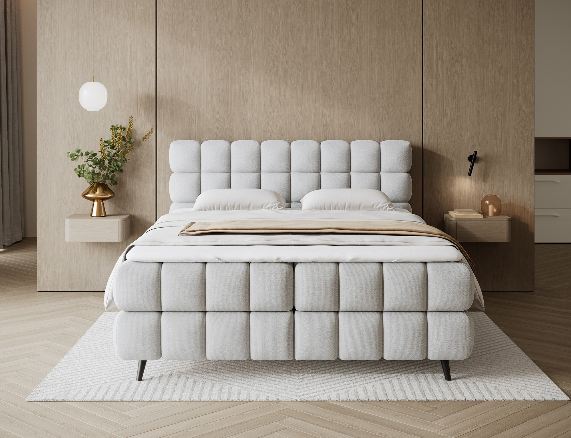The Sabeno continental bed is an elegant and functional choice for any modern bedroom. The model is available in three size variants: 140x200 cm, 160x200 cm, and 180x200 cm, allowing you to adjust the width of the bed to your individual needs. The total height of the structure is 111 cm and the depth is 222 cm, giving the bed a stable and impressive appearance. Sleeping comfort is ensured by the combination of Bonell springs and T2540 foam, which provide proper support and durability. The Sabeno bed is equipped with a practical bedding storage compartment that helps keep your bedroom organized. Black wooden furniture legs complete the overall design, adding subtle elegance and lightness. The modern style of the Sabeno makes it a perfect fit for both minimalist and more expressive interior arrangements. Thanks to its functionality, high-quality materials, and aesthetic finish, the Sabeno continental bed is the ideal choice for those who value comfort, durability, and stylish bedroom furniture.
