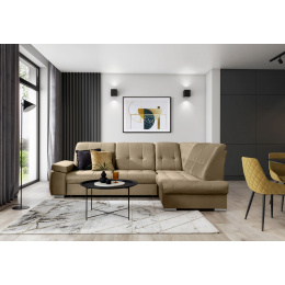 The Sado corner settee with dimensions of 272 x 192 x 95 cm was designed for a comfortable rest. Perfect for watching films, ideal for reading books. This is thanks to the profiled backrest with an adjustment function. The furniture is also equipped with a folding sleeping function with the area of 207 x 130 cm, so if the need arises, you can easily turn Sado into an additional bed. Another advantage of the corner settee is a very simple and intuitive dolphin mechanism used in the folding function of this piece of furniture. In addition, the container located in the ottoman can easily accommodate a bed set. A perfect storage for the people who value space! It is also worth to mention the comfortable, profiled armrest and elegant, silver-plated wooden legs, which will perfectly fit contemporary living rooms. In addition, you can choose from among many fabrics available in the broad collection of ELTAP materials for the Sado corner settee.