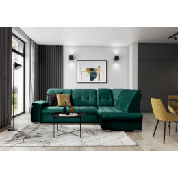 The Sado corner settee with dimensions of 272 x 192 x 95 cm was designed for a comfortable rest. Perfect for watching films, ideal for reading books. This is thanks to the profiled backrest with an adjustment function. The furniture is also equipped with a folding sleeping function with the area of 207 x 130 cm, so if the need arises, you can easily turn Sado into an additional bed. Another advantage of the corner settee is a very simple and intuitive dolphin mechanism used in the folding function of this piece of furniture. In addition, the container located in the ottoman can easily accommodate a bed set. A perfect storage for the people who value space! It is also worth to mention the comfortable, profiled armrest and elegant, silver-plated wooden legs, which will perfectly fit contemporary living rooms. In addition, you can choose from among many fabrics available in the broad collection of ELTAP materials for the Sado corner settee.