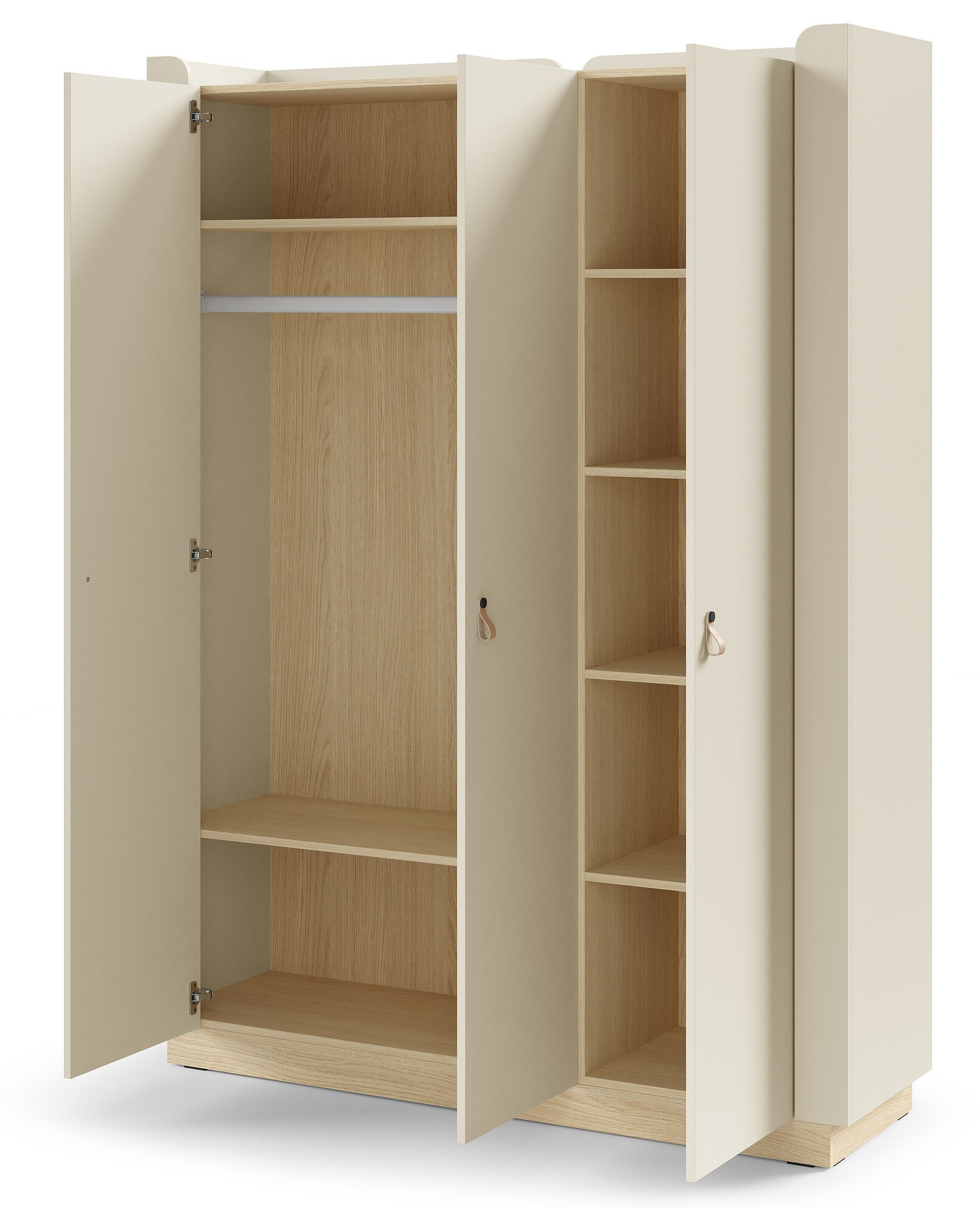 A SALERNO moduláris rendszer két színváltozatban érhető el: Macadamia/Tölgy Mavelie és Porcini/Tölgy Mavelie. Ez a rendszer lehetővé teszi a könnyű kombinálást és harmonikus belső tér kialakítását, legyen szó akár gyerekszobáról, nappaliról vagy otthona bármely más helyiségéről.