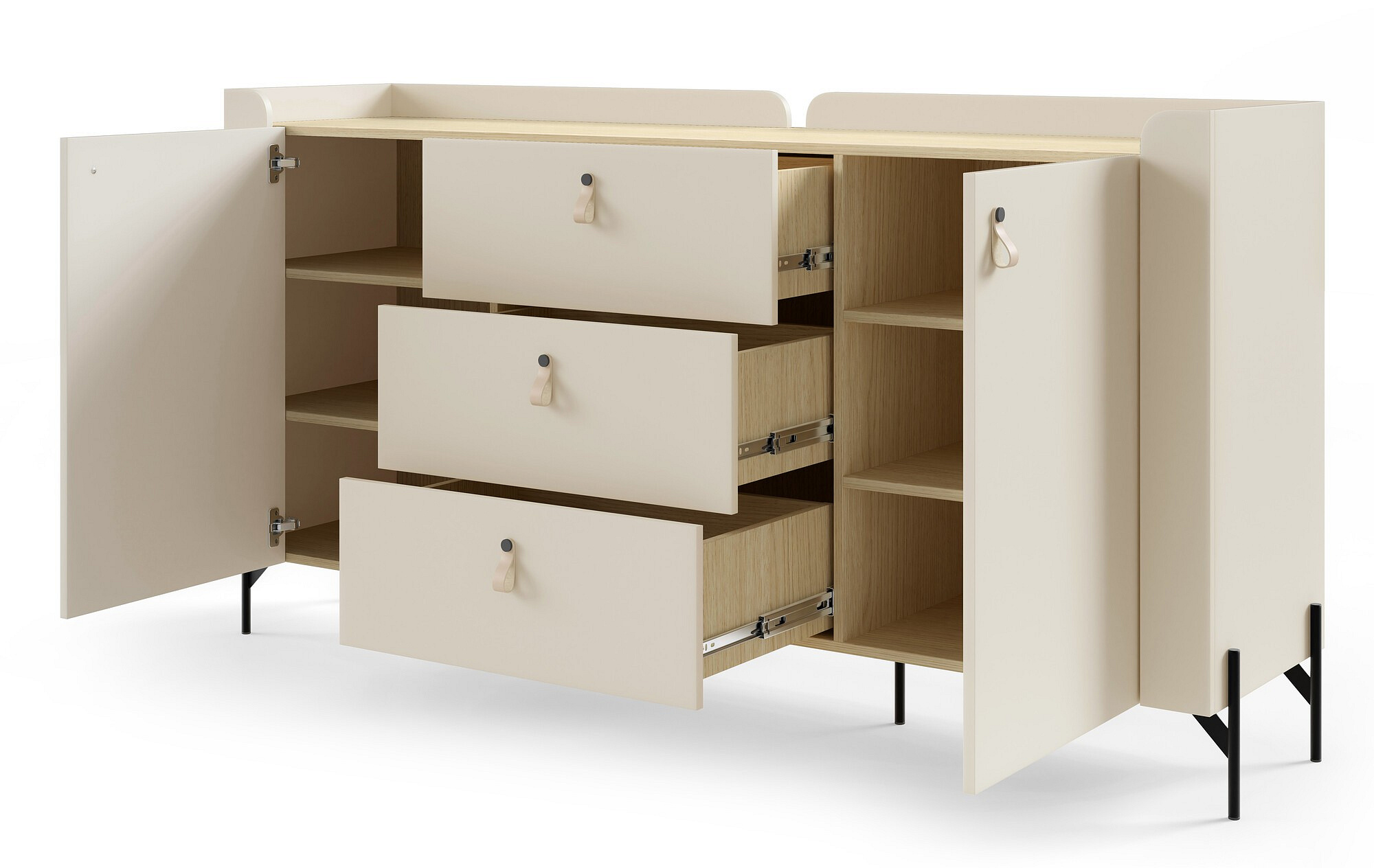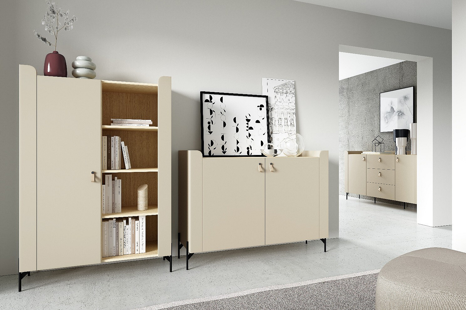 A SALERNO moduláris rendszer két színváltozatban érhető el: Macadamia/Tölgy Mavelie és Porcini/Tölgy Mavelie. Ez a rendszer lehetővé teszi a könnyű kombinálást és harmonikus belső tér kialakítását, legyen szó akár gyerekszobáról, nappaliról vagy otthona bármely más helyiségéről.
