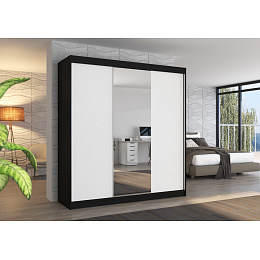 SANTIAGO 200 Tolóajtós és tükrös ruhásszekrény Fekete+Fehér