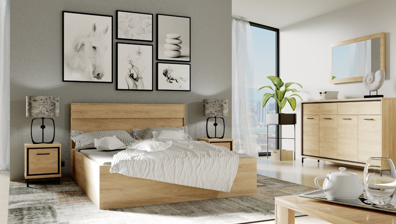- Természetes hikori + tölgy dekoráció