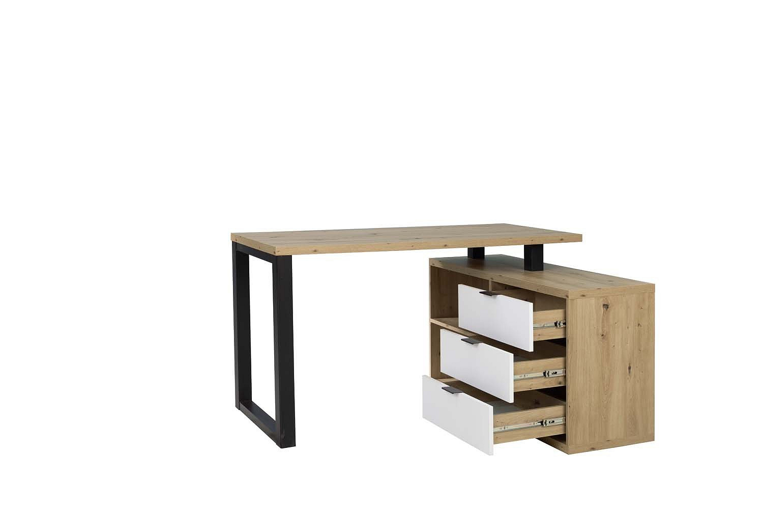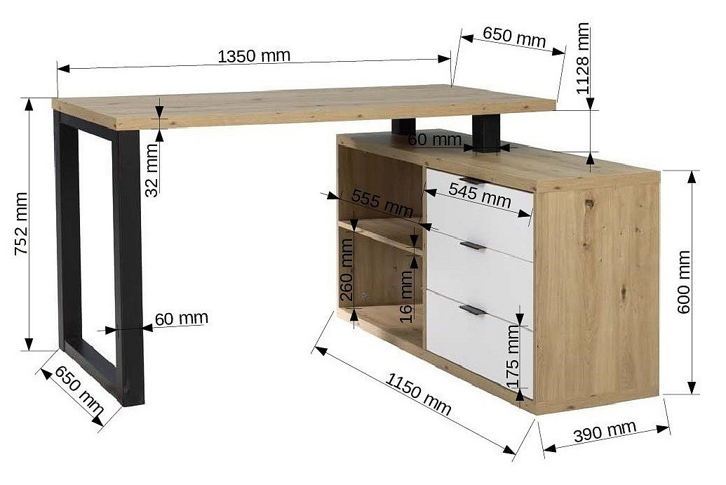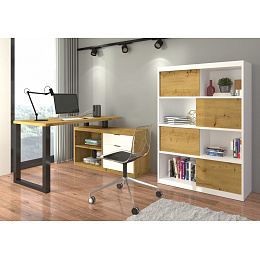 A MARO II sarokasztal ideálisan illik egy diákszobába, irodába vagy dolgozószobába. Sarokkialakításának köszönhetően kis helyiségekbe is befér. A bútor három fiókkal és egy tágas polccal van felszerelve, ami elegendő helyet biztosít az irodai kellékek tárolására. A MARO II íróasztal praktikus és sokoldalú bútordarab, amely biztosan illeszkedik a legtöbb belső térbe.