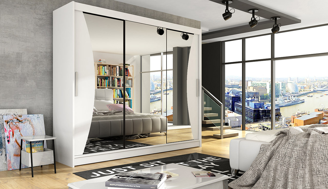 Skříň Astana s posuvnými dveřmi, je vyrobena z kvalitního lamina o síle 16 mm a hrany jsou ukončeny ABS lištou. Vodící lišty jsou vyrobeny z odolného hliníku a splňují požadavky pro každodenní užívání. Na dveřích skříně jsou nalepená zrcadla, která jsou na obou stranách zaříznutá do elegantního oblouku. Zrcadla místnost opticky zvětší a prosvětlí. Skříň nabízíme ve čtyřech odstínech. Díky svým rozměrům a uspořádání poskytuje dostatek úložného prostoru. Skříň je dodávána v demontu a součástí je montážní plánek včetně všech potřebných spojovacích materiálů. Vyobrazené dekorace nejsou v ceně.