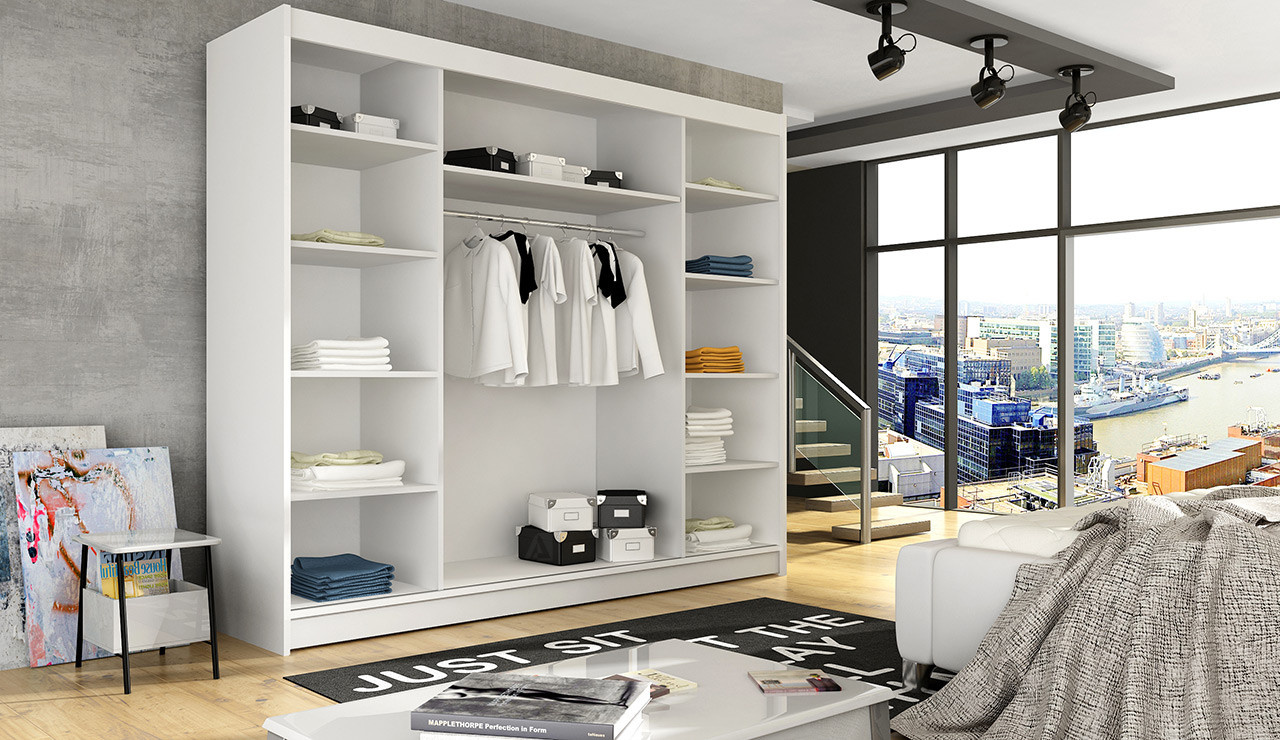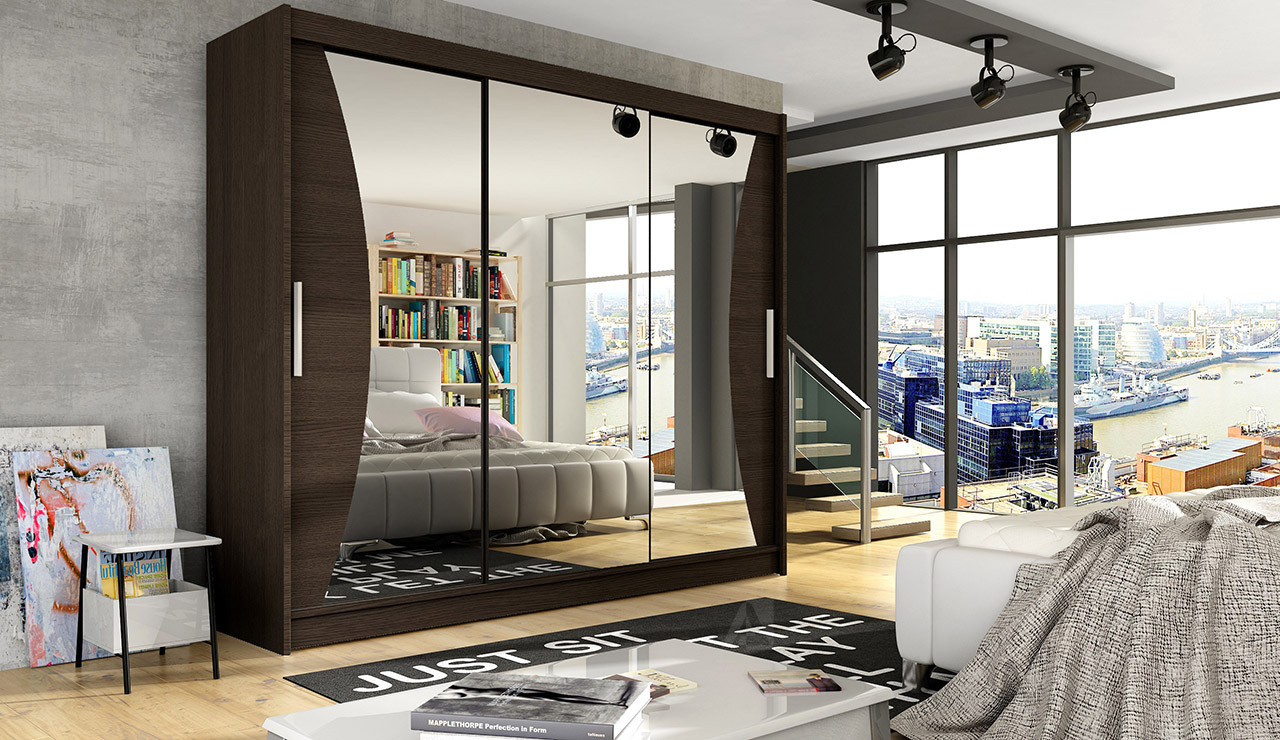 Skříň Astana s posuvnými dveřmi, je vyrobena z kvalitního lamina o síle 16 mm a hrany jsou ukončeny ABS lištou. Vodící lišty jsou vyrobeny z odolného hliníku a splňují požadavky pro každodenní užívání. Na dveřích skříně jsou nalepená zrcadla, která jsou na obou stranách zaříznutá do elegantního oblouku. Zrcadla místnost opticky zvětší a prosvětlí. Skříň nabízíme ve čtyřech odstínech. Díky svým rozměrům a uspořádání poskytuje dostatek úložného prostoru. Skříň je dodávána v demontu a součástí je montážní plánek včetně všech potřebných spojovacích materiálů. Vyobrazené dekorace nejsou v ceně.