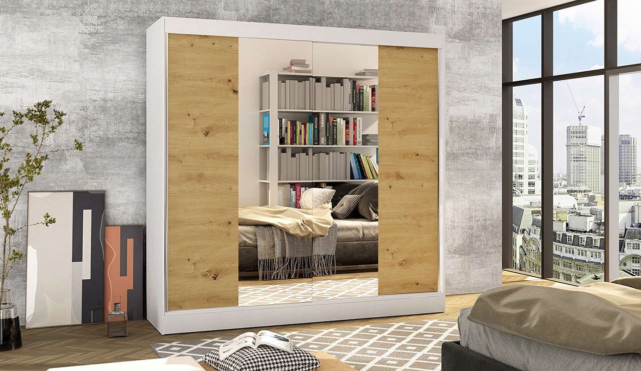 Šatní skříň BAJA II 200, Bílá/Dub artisan
