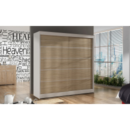 Skříň je vyrobena z kvalitního lamina. Díky svému vnitřnímu uspořádání nabízí dostatek úložného prostoru a posuvné dveře prostor šetří. Skříň je vhodná do ložnice, dětského nebo studentského pokoje, do předsíně i kanceláře. Vnitřní uspořádání skříně je vyobrazeno na fotografii. Skříň je dodávána v demontu a součástí je montážní plánek včetně všech potřebných spojovacích materiálů. Vyobrazené dekorace nejsou v ceně.