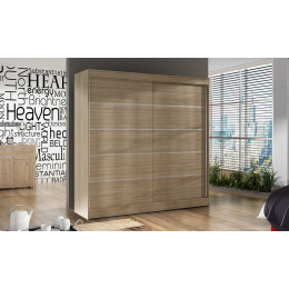 Skříň je vyrobena z kvalitního lamina. Díky svému vnitřnímu uspořádání nabízí dostatek úložného prostoru a posuvné dveře prostor šetří. Skříň je vhodná do ložnice, dětského nebo studentského pokoje, do předsíně i kanceláře. Vnitřní uspořádání skříně je vyobrazeno na fotografii. Skříň je dodávána v demontu a součástí je montážní plánek včetně všech potřebných spojovacích materiálů. Vyobrazené dekorace nejsou v ceně.