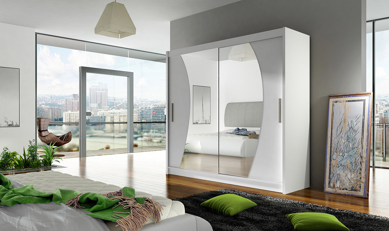 Skříň Berger s posuvnými dveřmi, je vyrobena z kvalitního lamina o síle 16 mm a hrany jsou ukončeny ABS lištou. Vodící lišty jsou vyrobeny z odolného hliníku a splňují požadavky pro každodenní užívání. Skříň je doplněna zrcadly zaříznutými do oblouku, která jí dodávají elegantní vzhled a místnost opticky zvětší a prosvětlí. Nabízíme ji ve čtyřech odstínech. Díky svým rozměrům a uspořádání poskytuje dostatek úložného prostoru. Skříň je dodávána v demontu a součástí je montážní plánek včetně všech potřebných spojovacích materiálů. Vyobrazené dekorace nejsou v ceně.