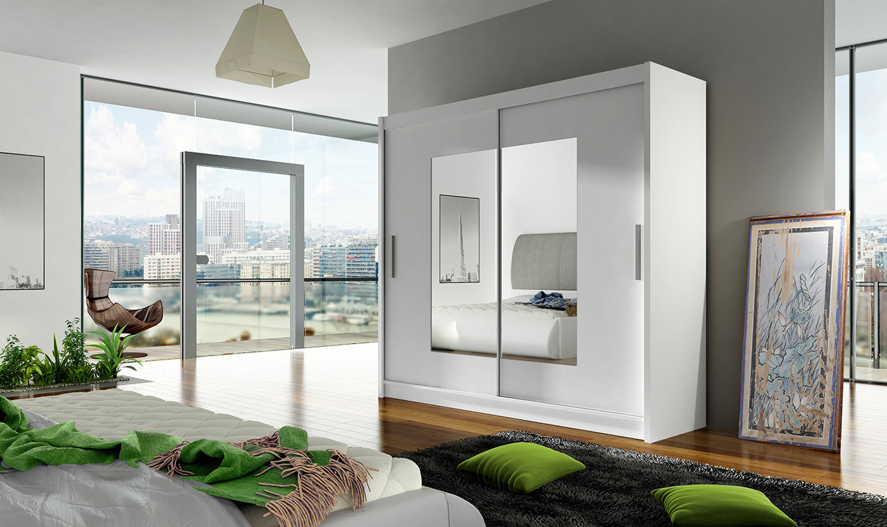 Skříň Berger s posuvnými dveřmi, je vyrobena z kvalitního lamina o síle 16 mm a hrany jsou ukončeny ABS lištou. Vodící lišty jsou vyrobeny z odolného hliníku a splňují požadavky pro každodenní užívání. Skříň je doplněna zrcadly, která jsou umístěna na středu dveří a místnost opticky zvětší a prosvětlí. Nabízíme ji ve čtyřech odstínech. Díky svým rozměrům a uspořádání poskytuje dostatek úložného prostoru. Skříň je dodávána v demontu a součástí je montážní plánek včetně všech potřebných spojovacích materiálů. Vyobrazené dekorace nejsou v ceně.