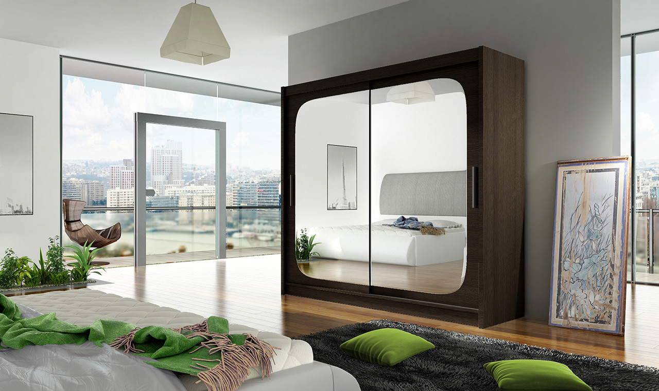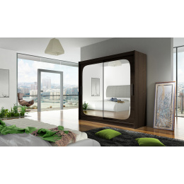 Skříň Berger s posuvnými dveřmi, je vyrobena z kvalitního lamina o síle 16 mm a hrany jsou ukončeny ABS lištou. Vodící lišty jsou vyrobeny z odolného hliníku a splňují požadavky pro každodenní užívání. Skříň je doplněna zrcadly se zaoblenými rohy, která jí dodávají retro vzhled a místnost opticky zvětší a prosvětlí. Nabízíme ji ve čtyřech odstínech. Díky svým rozměrům a uspořádání poskytuje dostatek úložného prostoru. Skříň je dodávána v demontu a součástí je montážní plánek včetně všech potřebných spojovacích materiálů. Vyobrazené dekorace nejsou v ceně.