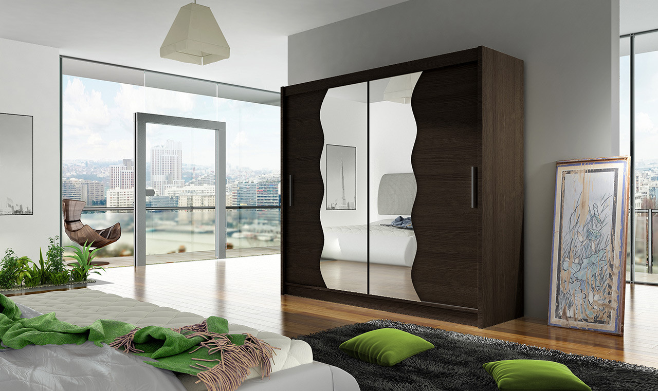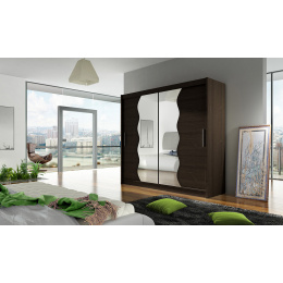 Skříň Berger s posuvnými dveřmi, je vyrobena z kvalitního lamina o síle 16 mm a hrany jsou ukončeny ABS lištou. Vodící lišty jsou vyrobeny z odolného hliníku a splňují požadavky pro každodenní užívání. Skříň je doplněna vlnitými zrcadly, která jí dodávají elegantní vzhled a místnost opticky zvětší a prosvětlí. Nabízíme ji ve čtyřech odstínech. Díky svým rozměrům a uspořádání poskytuje dostatek úložného prostoru. Skříň je dodávána v demontu a součástí je montážní plánek včetně všech potřebných spojovacích materiálů. Vyobrazené dekorace nejsou v ceně.