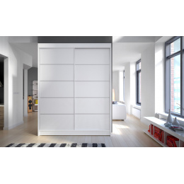 Skříň je vyrobena z kvalitního lamina. Díky svému vnitřnímu uspořádání nabízí dostatek úložného prostoru a posuvné dveře prostor šetří. Skříň je vhodná do ložnice, dětského nebo studentského pokoje, do předsíně i kanceláře. Vnitřní uspořádání skříně je vyobrazeno na fotografii. Skříň je dodávána v demontu a součástí je montážní plánek včetně všech potřebných spojovacích materiálů. Vyobrazené dekorace nejsou v ceně.