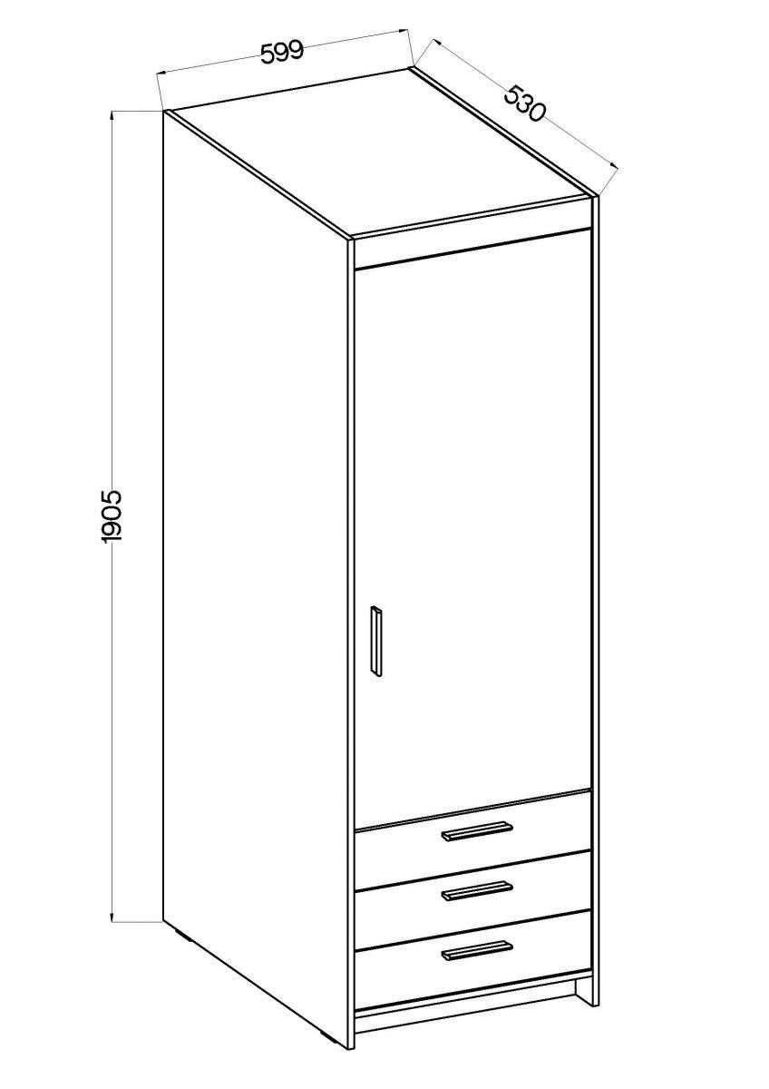 Šatní skříň Enja 1D3S, dub sonoma
