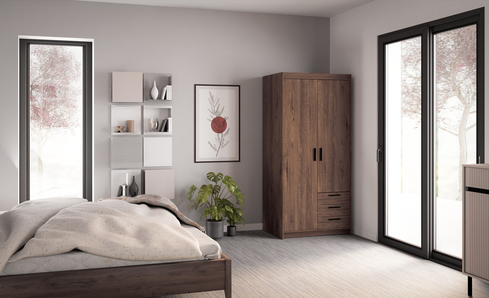 Šatní skříň Enja 2D3S, dub lefkas
