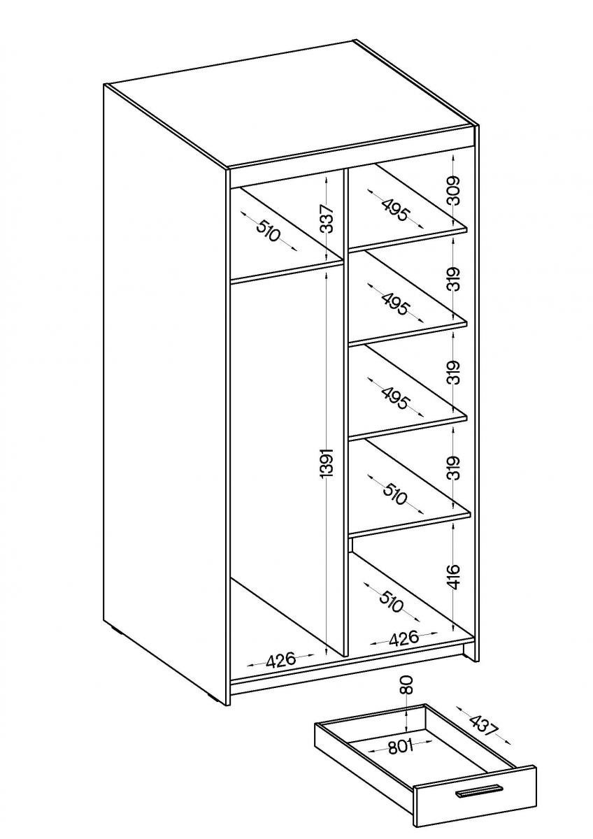 Šatní skříň Enja je vyrobena z kvalitního lamina tl.15 mm, které je odolné a snadné na údržbu. Vnitřní uspořádání skříně je praktické a poskytuje dostatek úložného prostoru. Své uplatnění najde v ložnici, předsíni i v dětském pokoji. Ke skříni lze dokoupit nádstavec. Skříň je dodávaná v demontu a nabízíme ji ve několika barevných provedeních. Součástí balení je montážní plánek včetně všech potřebných spojovacích materiálů.
