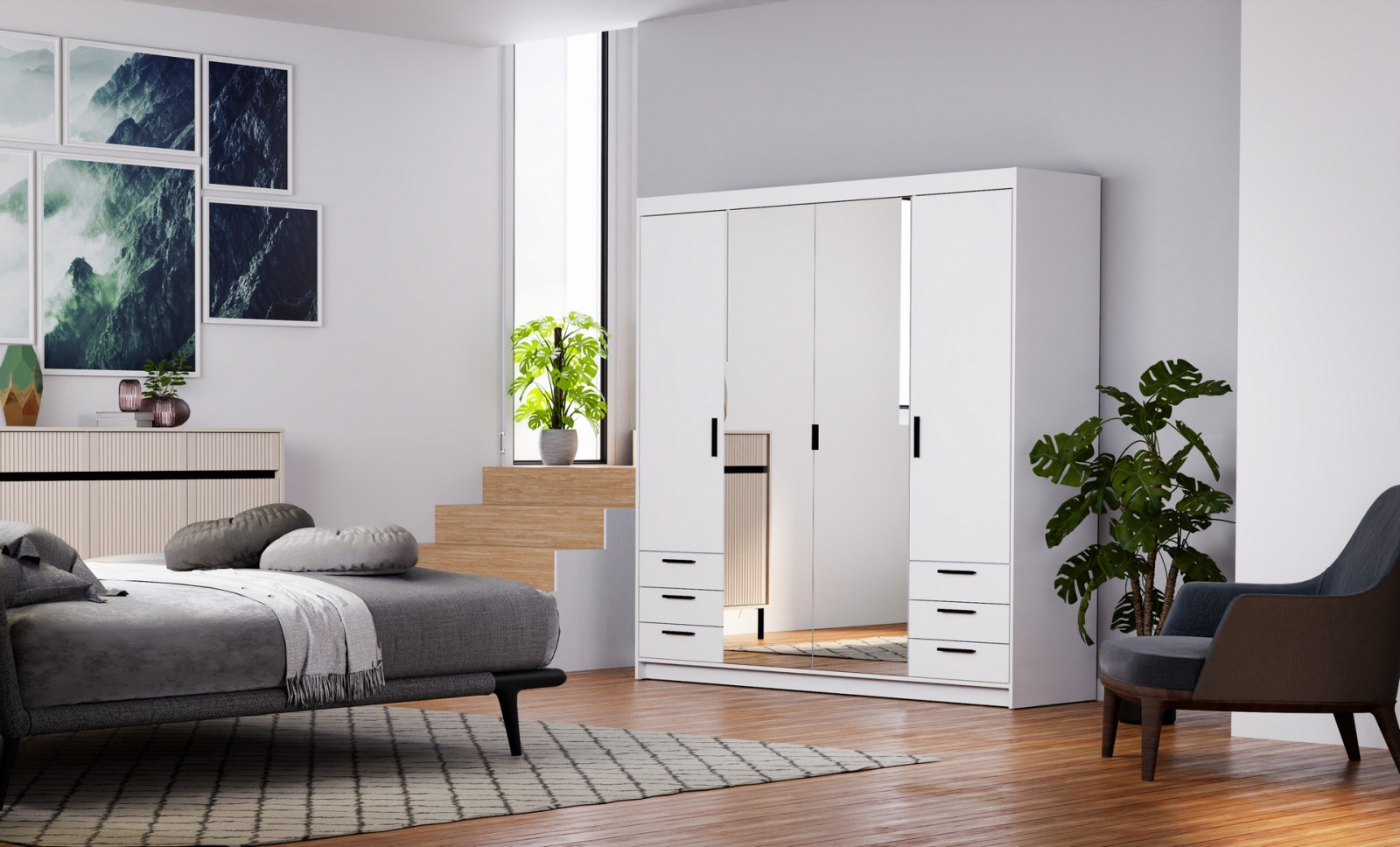 Šatní skříň Enja 4D6S, bílá