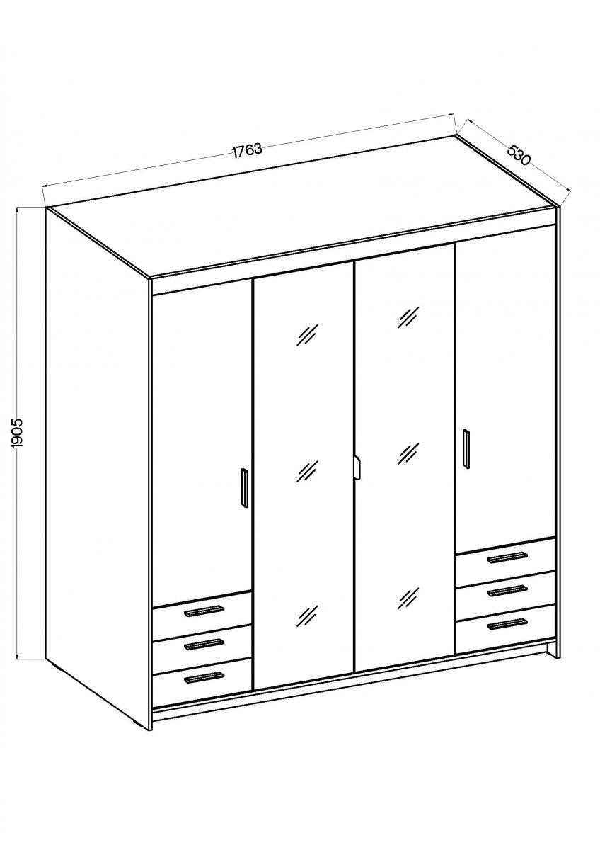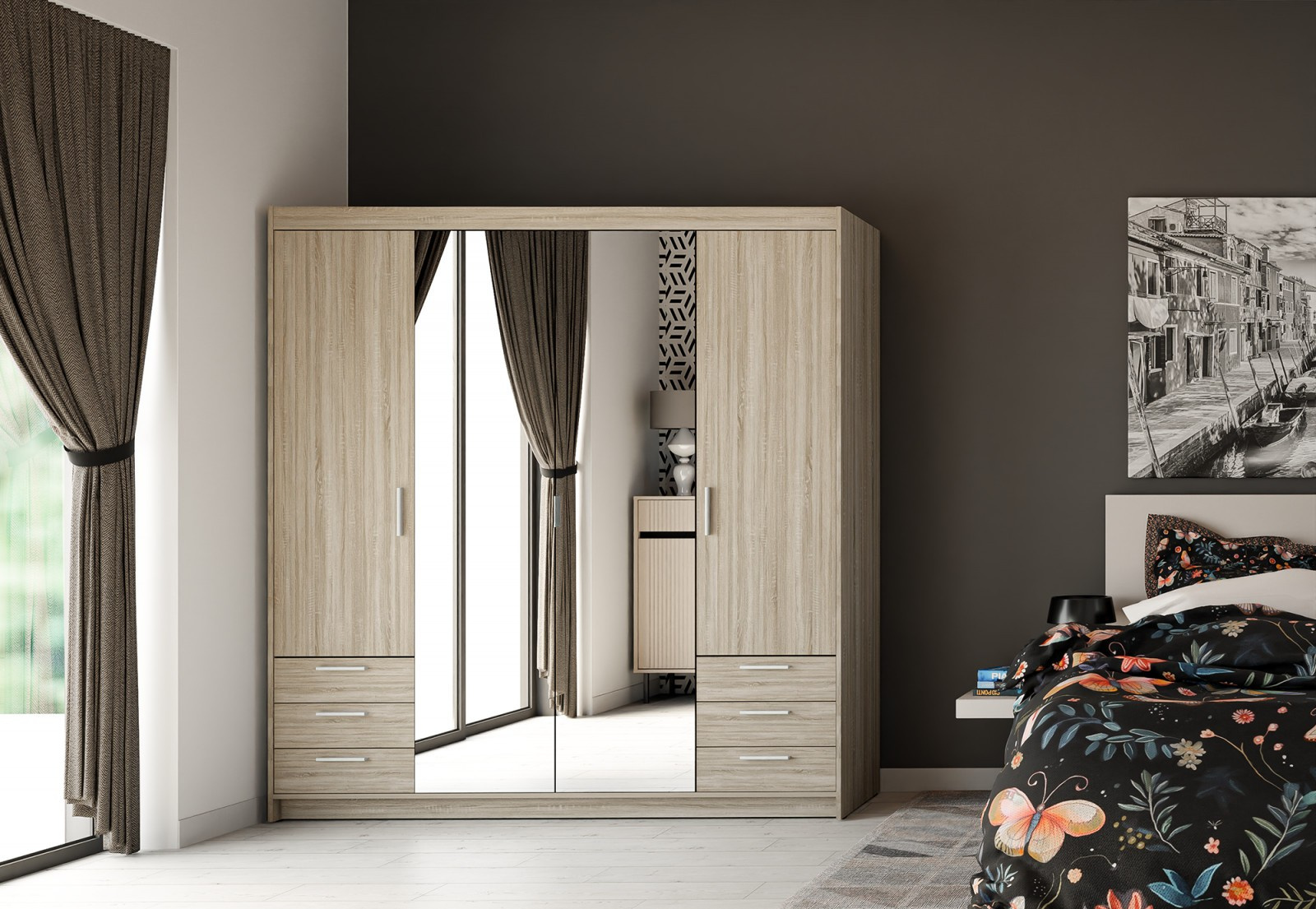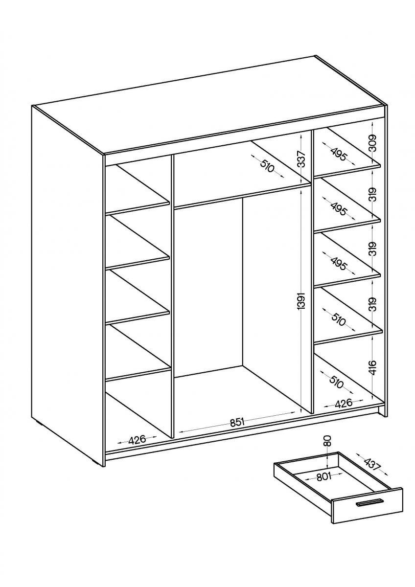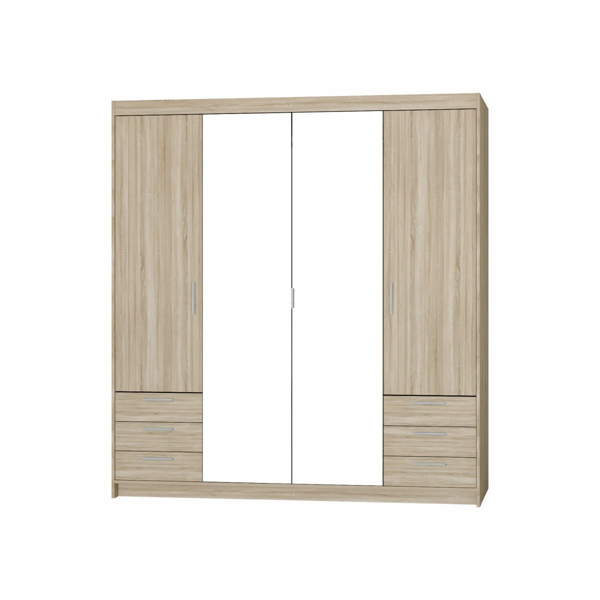 Šatní skříň Enja se zrcadlem je vyrobena z kvalitního lamina tl.15 mm, které je odolné a snadné na údržbu. Vnitřní uspořádání skříně je praktické a poskytuje dostatek úložného prostoru. Své uplatnění najde v ložnici, předsíni i v dětském pokoji. Ke skříni lze dokoupit nádstavec. Skříň je dodávaná v demontu a nabízíme ji ve několika barevných provedeních. Součástí balení je montážní plánek včetně všech potřebných spojovacích materiálů.