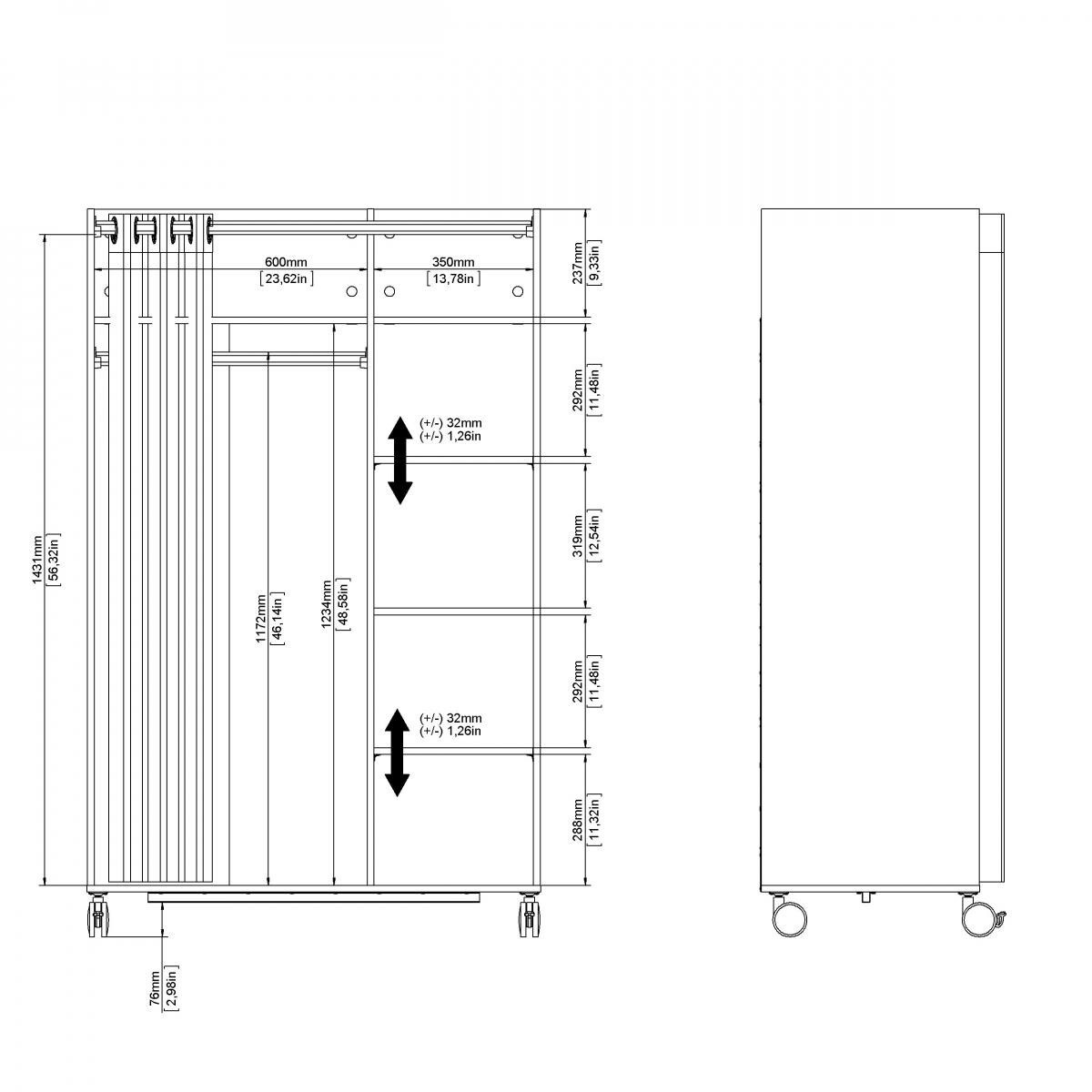 Mobilní šatní skříň na kolečkách Harmony má netypický a originální design. Skříň má dostatek úložného prostoru a univerzální využití. Je vyrobena z lamina a klasické dveře jsou nahrazeny závěsem v krémové barvě. Díky kolečkům skříň jednoduše přesunete kam budete potřebovat. Skvěle se hodí do studentských pokojů, kanceláří, pracoven dětských pokojů, nebo předsíní. Skříň je dodávaná v demontu. Součástí balení je montážní plánek včetně všech spojovacích prvků. Vyobrazené doplňky a dekorace nejsou v ceně.