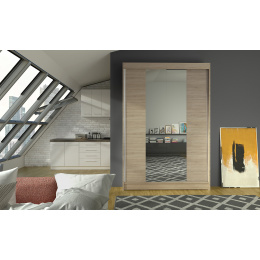Skříň je vyrobena z kvalitního lamina. Díky svému vnitřnímu uspořádání nabízí dostatek úložného prostoru, posuvné dveře šetří prostor a zrcadlo ho opticky zvětšuje. Skříň je vhodná do ložnice, dětského nebo studentského pokoje, do předsíně i kanceláře. Vnitřní uspořádání skříně je vyobrazeno na fotografii. Skříň je dodávána v demontu. Součástí jsou i skleněná zrcadla, která jsou nalepena na dveřích skříně a také montážní plánek včetně všech potřebných spojovacích materiálů. Vyobrazené dekorace nejsou v ceně.
