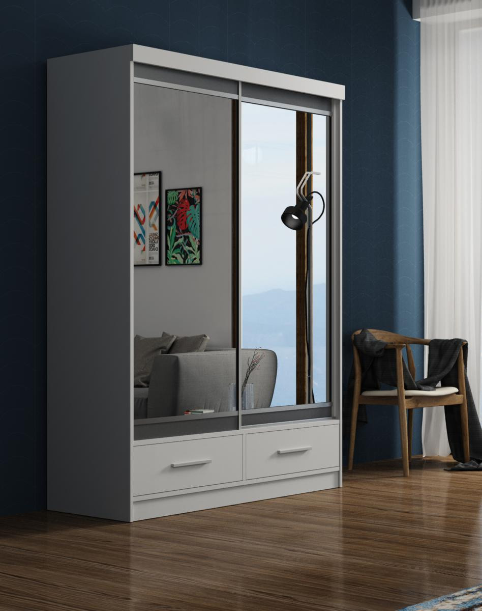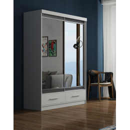 Šatní skříň Margita je vyrobena z lamina. Má posuvné dveře, které šetří prostor a na dveřích skříně jsou zrcadla, které místnost opticky zvětší a prosvětlí. Díky svému vnitřnímu uspořádání (vyobrazeno v doplňkových fotografiích) nabízí skříň dostatek úložného prostoru. Skříň je také vybavena zásuvkami, do kterých můžete uložit drobnosti. Skříň Margo najde uplatnění např. v dětském nebo studentském pokoji, v předsíni, v ložnici i v obývacím pokoji. Nabízíme ji v rozměrech 120 cm, 150 cm, 200 cm a 250 cm. Všechny nabízené rozměry jsou dostupné v černé a bílé barvě a dále také v dekoru sonoma. Skříň je dodávána v demontu a součástí je montážní plánek včetně všech potřebných spojovacích prvků. Vyobrazené doplňky a dekorace nejsou v ceně. ÚVODNÍ FOTOGRAFIE JE ILUSTRAČNÍ. SKŘÍŇ BUDE DODÁNA V DEKORU SONOMA