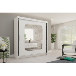 Skříň s posuvnými dveřmi Mario je vyrobena z kvalitního lamina. Dveře skříně jsou osazeny zrcadlem v netradičním tvaru a na bocích jsou ozdobné pásky v černém lesku. Tyto doplňky dodávají skříni originální a elegantní vzhled. Díky svému vnitřnímu uspořádání nabízí dostatek úložného prostoru, posuvné dveře šetří prostor a zrcadlo ho opticky zvětší a prosvětlí. Skříň najde uplatnění v ložnici, dětském nebo studentském pokoji, v předsíni i kanceláři. Nabízíme ji v rozměrech 120 cm, 150 cm,180 cm a 200 cm. Všechny nabízené rozměry jsou dostupné v bílé barvě a dále také v dekoru sonoma. Skříň je dodávána v demontu a součástí je montážní plánek včetně všech potřebných spojovacích prvků. Vyobrazené dekorace nejsou v ceně. ÚVODNÍ FOTOGRAFIE JE ILUSTRAČNÍ. SKŘÍŇ BUDE DODÁNA V DEKORU SONOMA.