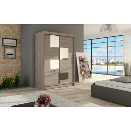 Moderní a elegantní design skříně osloví i náročné zákazníky. Eleganci podtrhují dlouhé stříbrné úchyty a moderní nádech dodávají zrcadla, která jsou nalepena na dveřích skříně. Je vyrobena z lamina o síle 16 mm a hrany jsou ukončeny ABS lištou. Vodící lišty jsou vyrobeny z odolného hliníku a splňují požadavky pro každodenní užívání. Díky svému uspořádání poskytuje dostatek úložného prostoru. Skvěle se hodí do ložnice, předsíně, dětského, nebo studentského pokoje. Skříň je dodávána v demontu a součástí je montážní plánek včetně všech potřebných spojovacích materiálů. Vyobrazené dekorace nejsou v ceně.