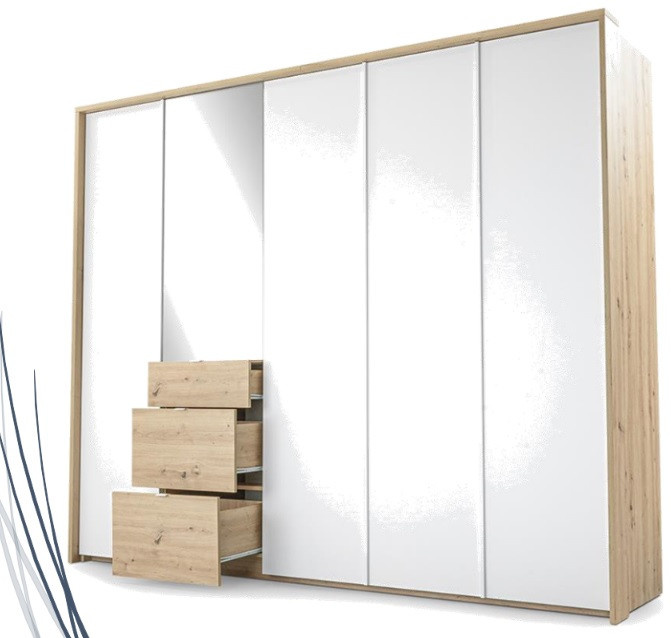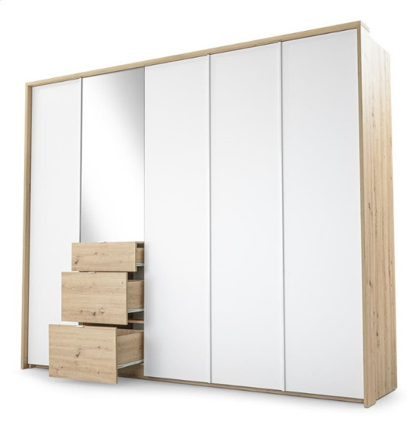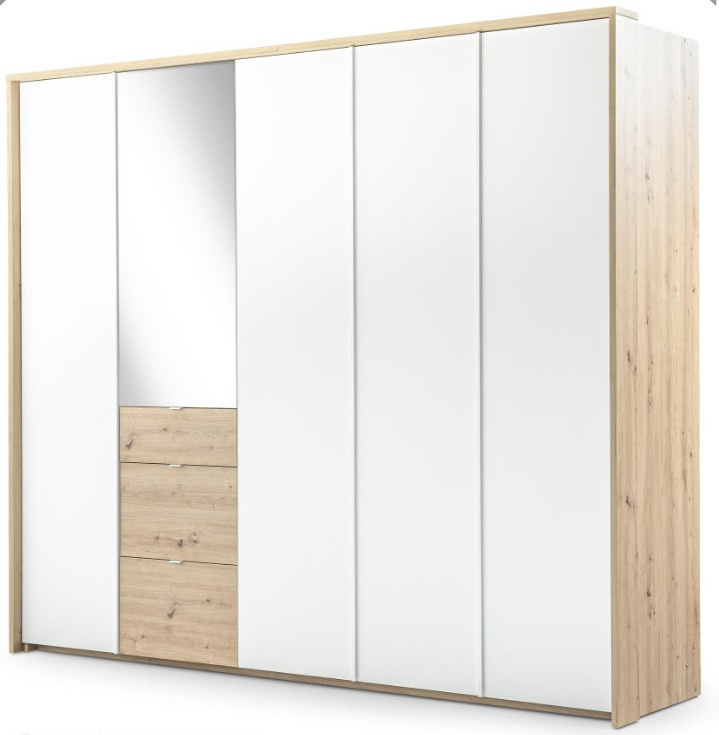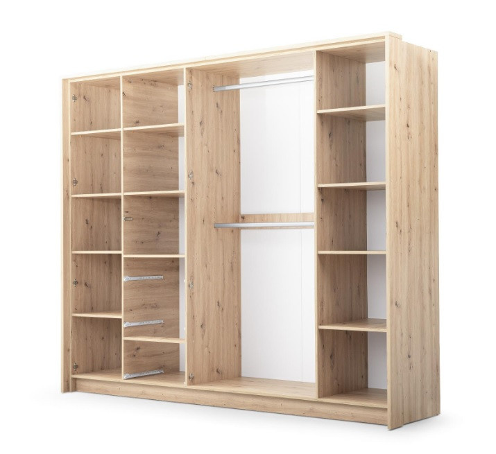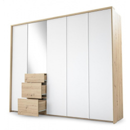 Šatní skříň NICEA 255 se zrcadlem, Bílá + Dub Artisan