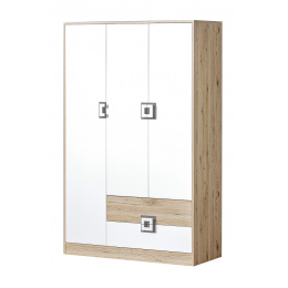 Šatní skříň NICO 03, Světlý Dub/Bílá/Šedá